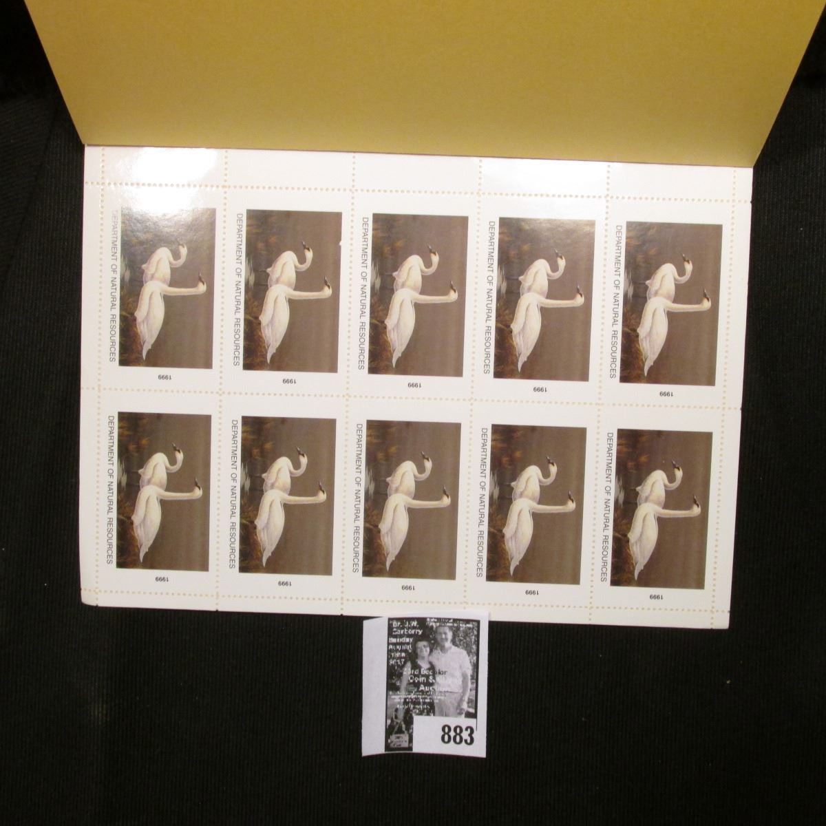 1999 Booklet Pane of Ten Iowa Duck Stamps in folder No. 00053. Crisp Uncirculated.