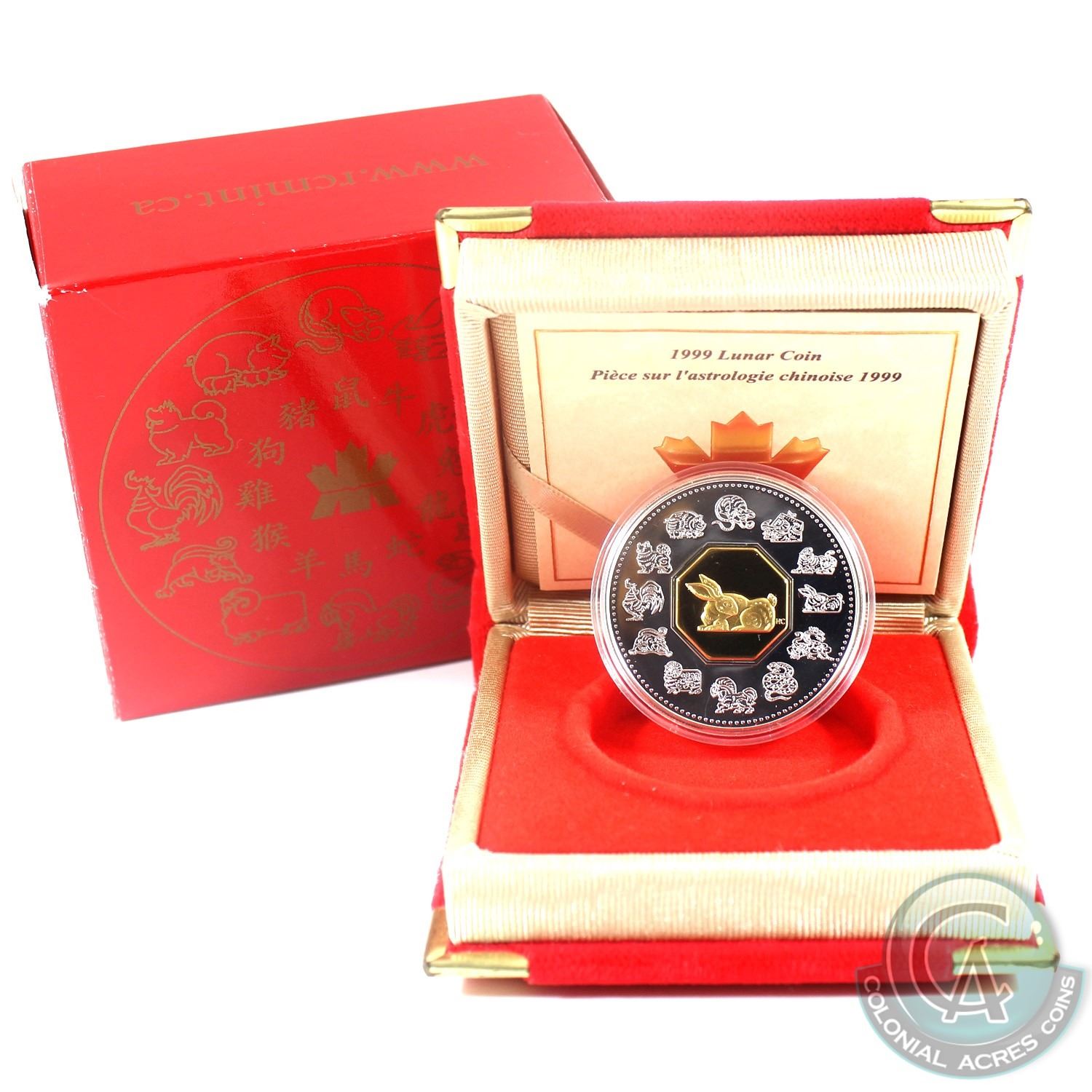 1999 Canada $15 Year of the Rabbit Sterling Silver & Gold Plated Cameo Coin. (Capsule is scratched)