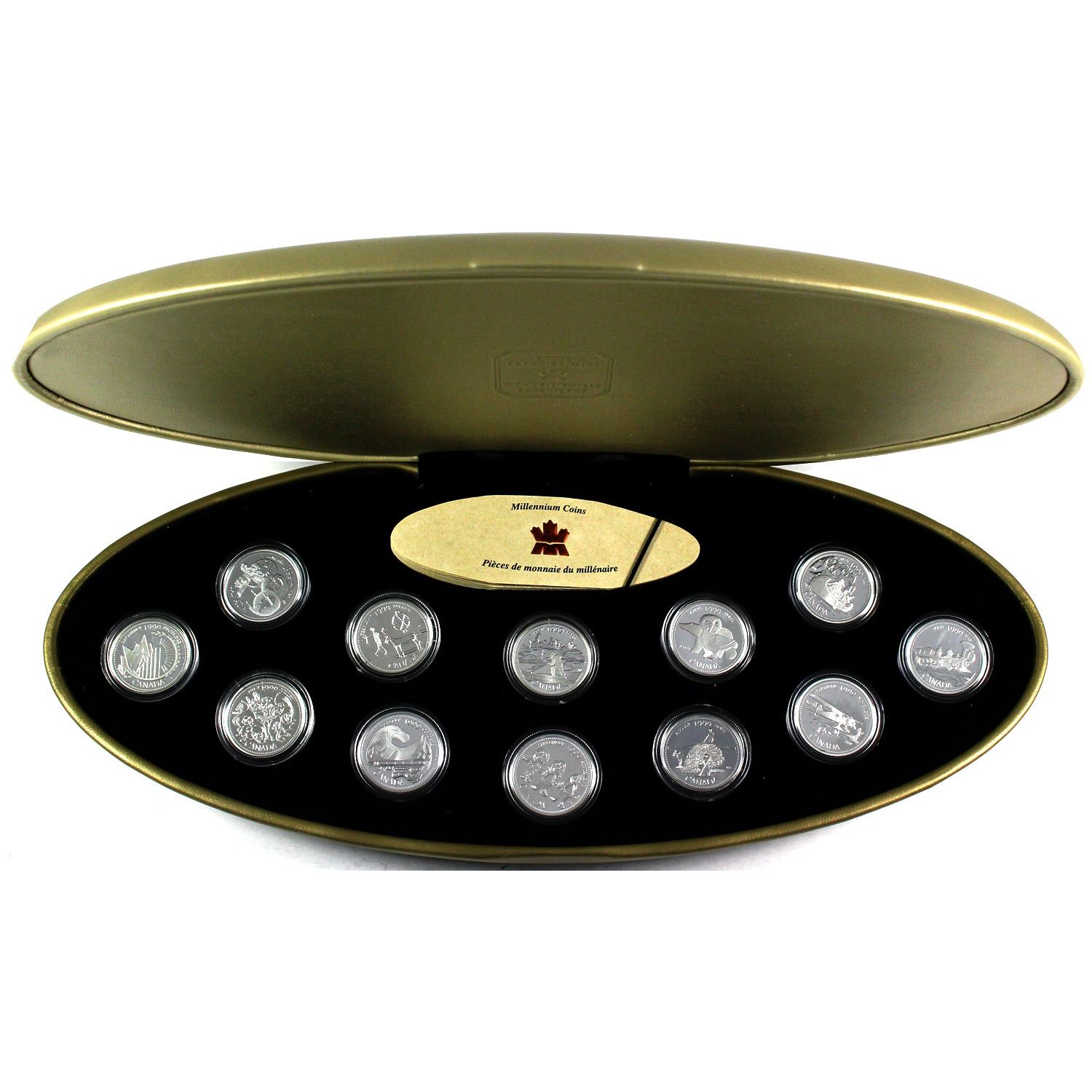 1999 Canada 25-cent Millennium Proof Sterling Silver 12-coin Set (A few capsules are cracked & some are scratched).