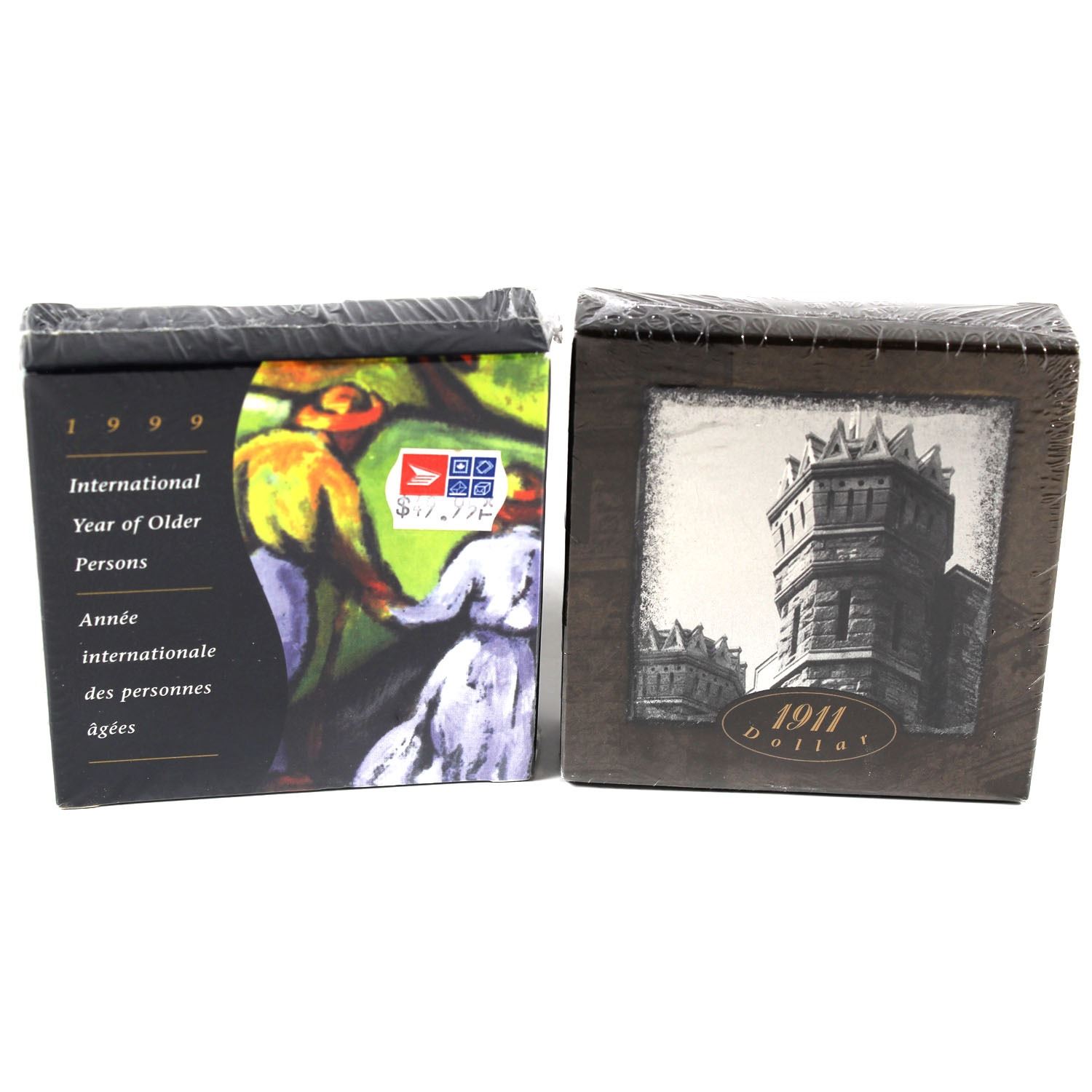 1999 Canada International Year of the Older Persons & 1911-2001 Commemorative Sterling Silver Proof Dollars. Still sealed in original plastic. 2pcs