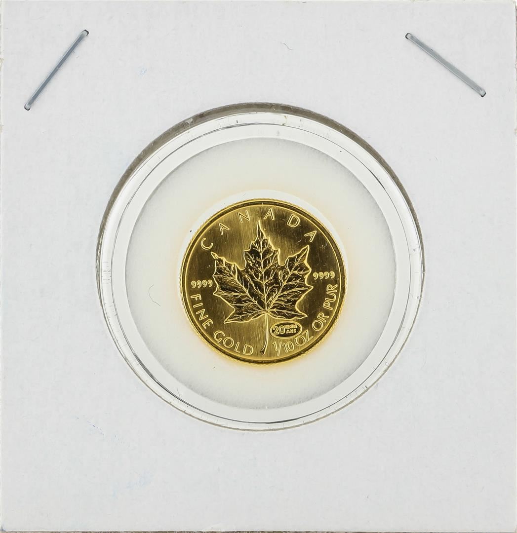 One 1999 Canada Maple 1/10 oz Fine 9999 Gold Coin.