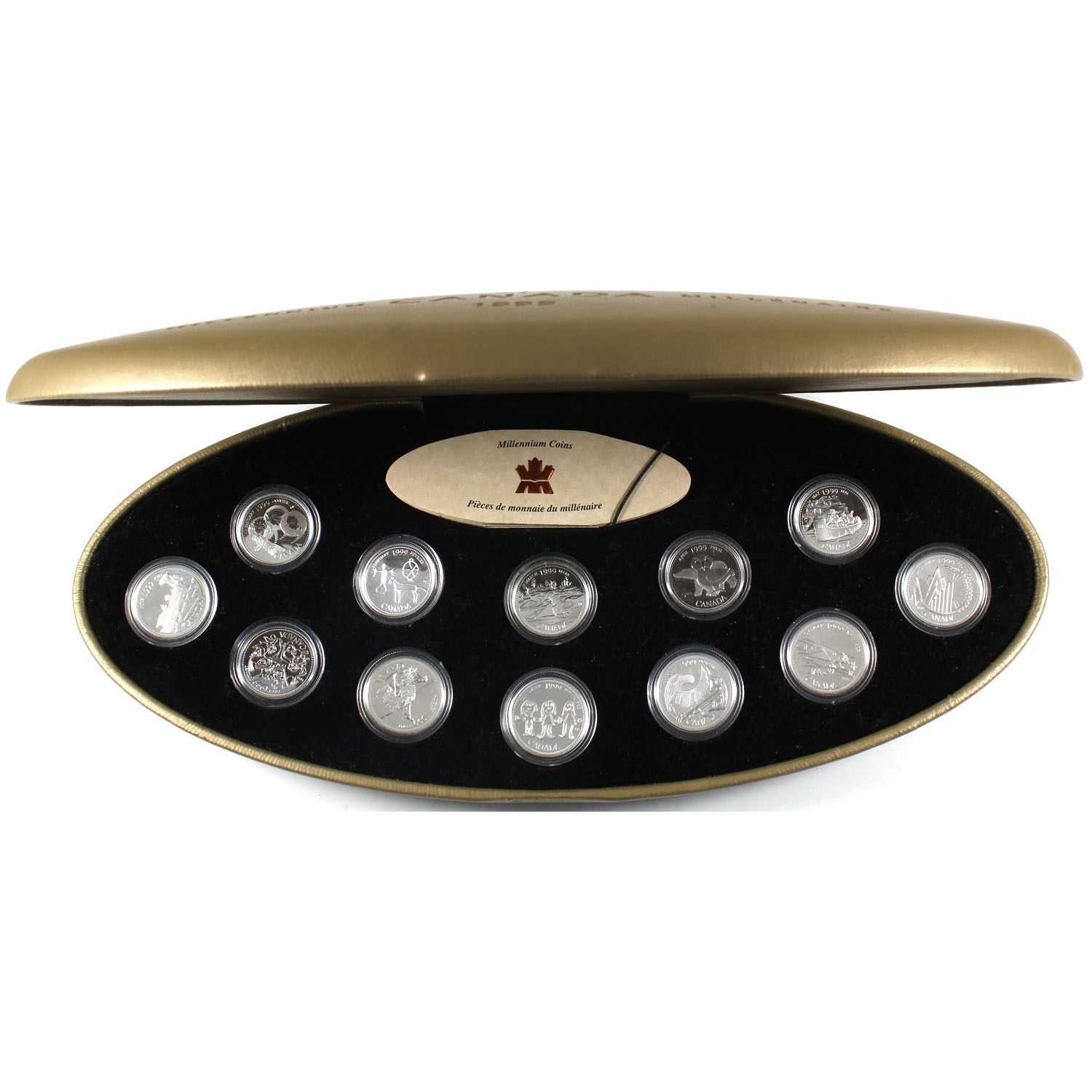 1999 Canada Millennium 12-coin 25-Cent Proof Sterling Silver Set (capsules are scratched).