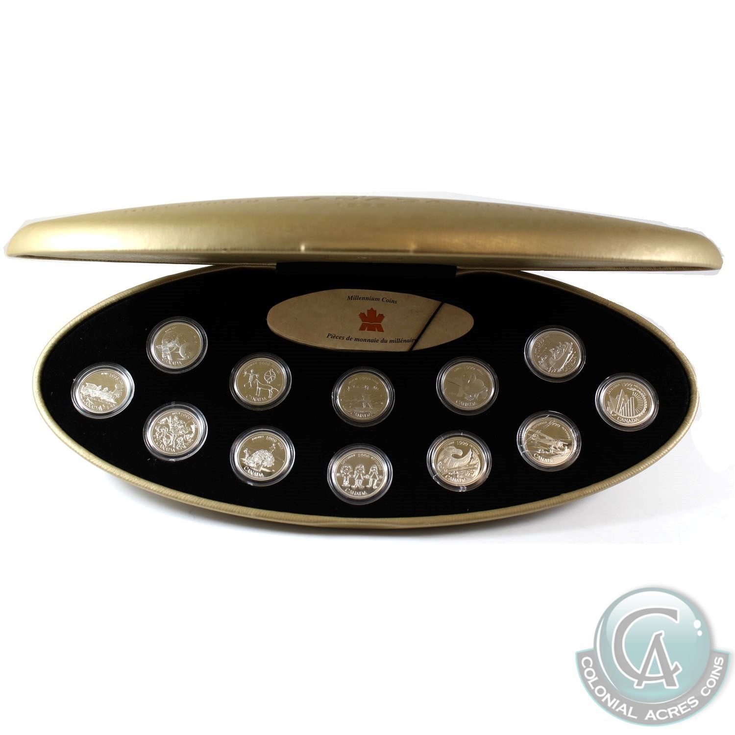 1999 Canada Millennium 25-cent Sterling Silver 12-coin Set in Original Packaging. (April coin is lightly toned, 2 capsules are cracked & some capsules may be lightly scratched)