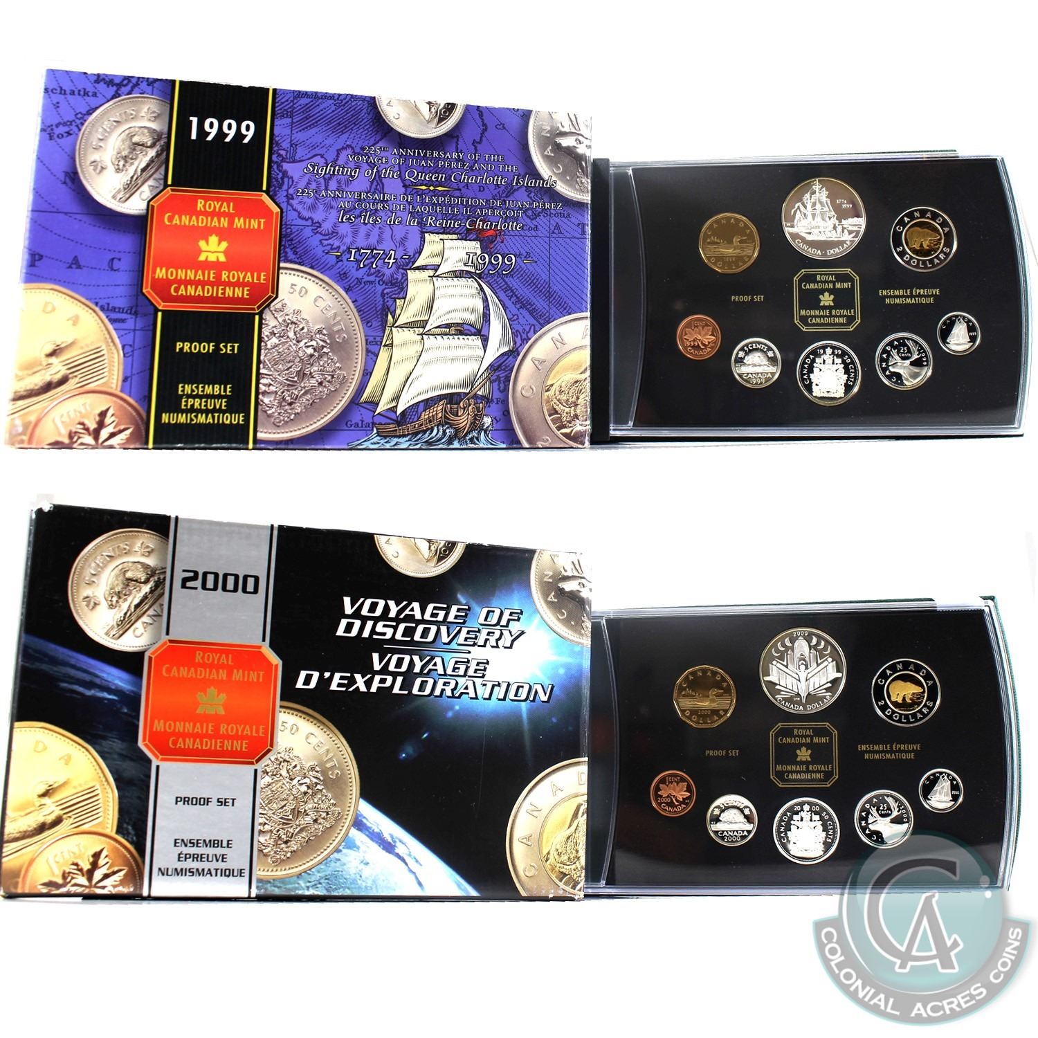 1999 Canada Voyage of Juan Perez & 2000 Voyage of Discovery Double Dollar Proof Sets (Some coins have toning). 2pcs