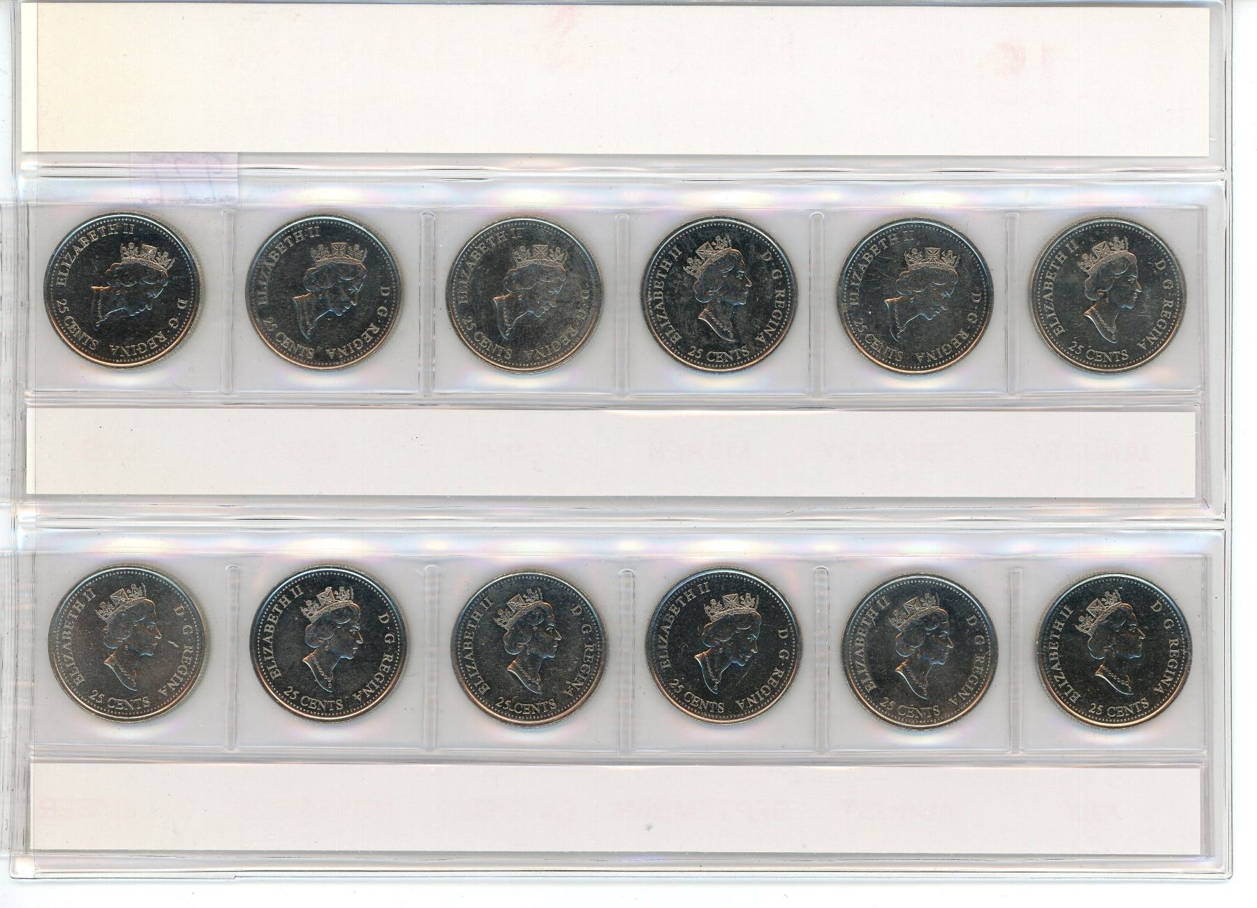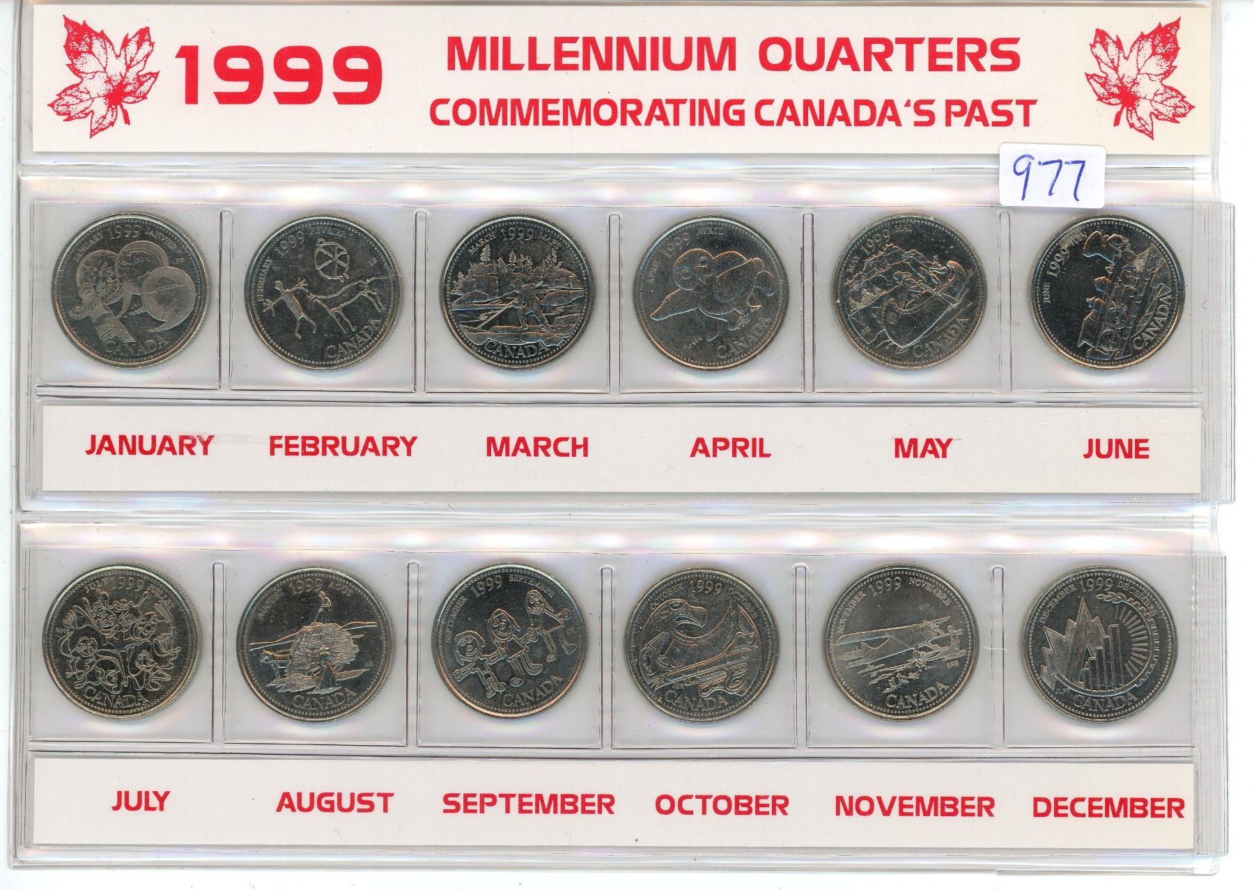 1999 Canadian Millennium 25 Cents. One for each month of the year.