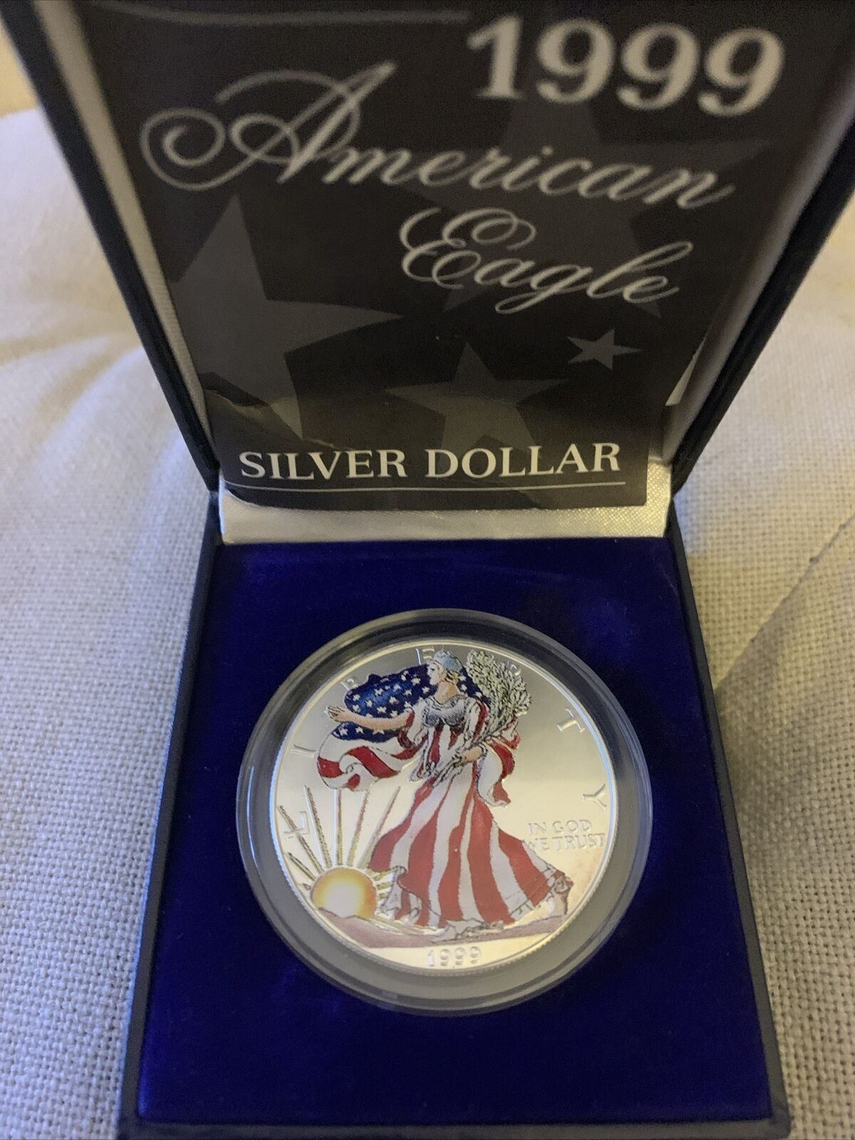 1999 Colorized U.S. American Eagle Fine Silver Dollar Brilliant Uncirculated