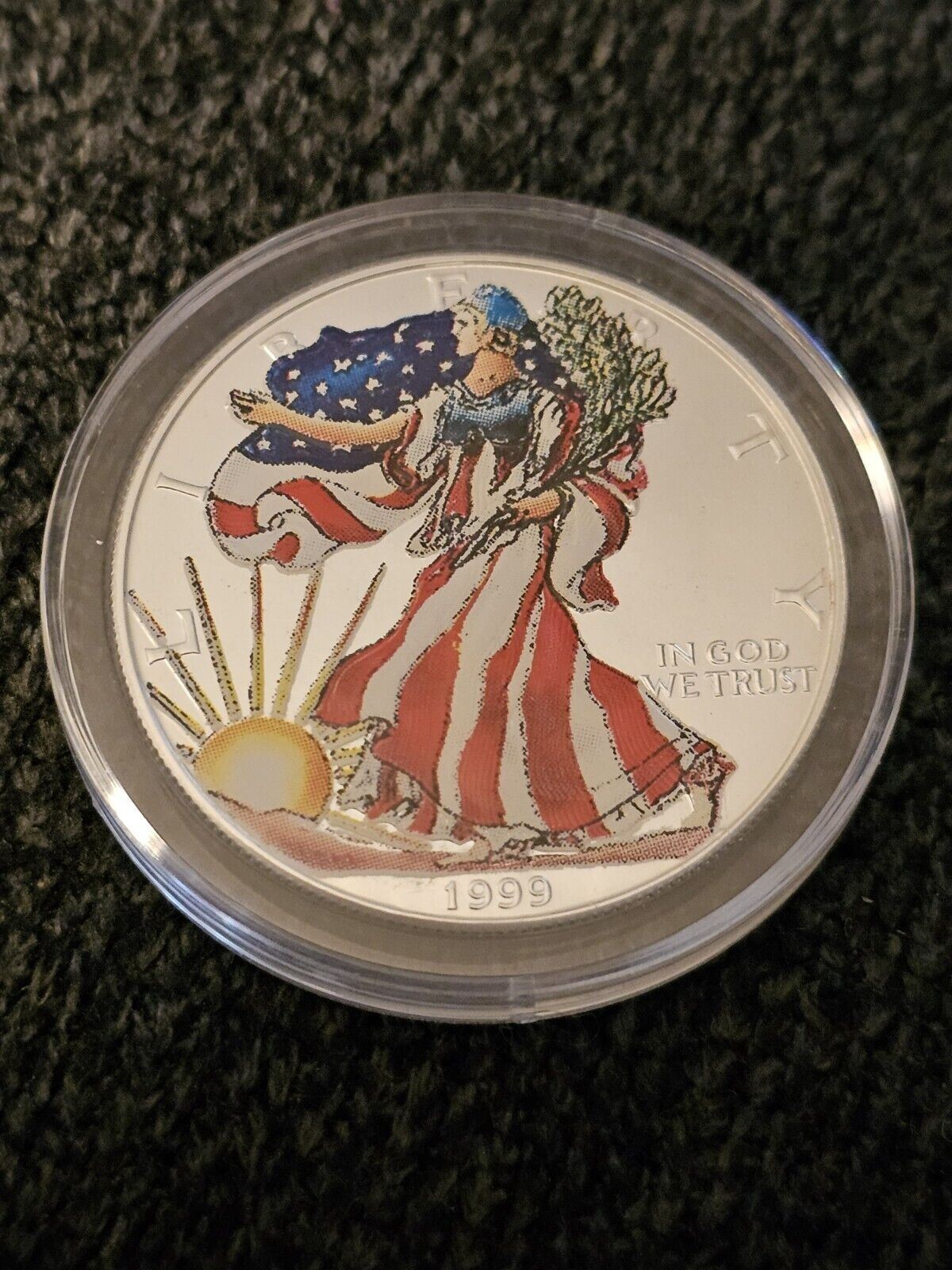 1999 Colorized U.S. American Eagle Fine Silver Dollar Brilliant Uncirculated