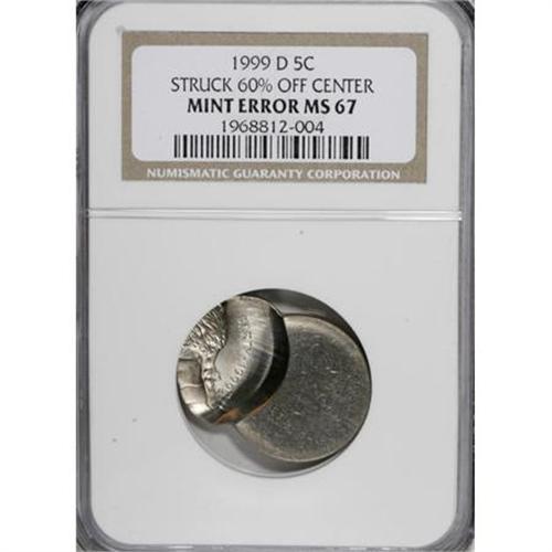 <B>1999-D 5C Jefferson Nickel--Struck 60% Off Center--MS67 NGC.</B></I> <BR><BR><B>Coin Engraver:</B> Felix Schlag<BR><BR><b>Shipping:</b> Coins & Currency (<a target="_blank" href="http://www.heritageauctions.com/common/shipping.php">view shipping information</a>)