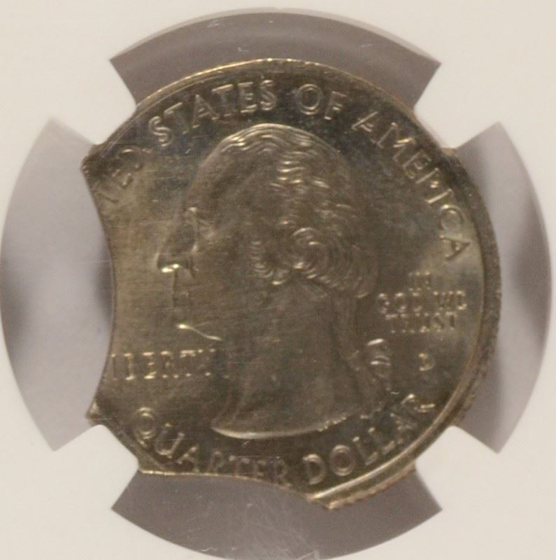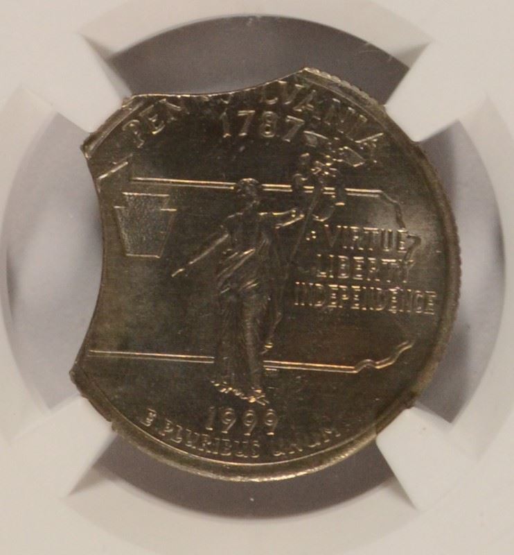 1999-D PENNSYLVANIA STATE QUARTER NGC MINT ERROR, MS-64 DOUBLE CURVED CLIP
