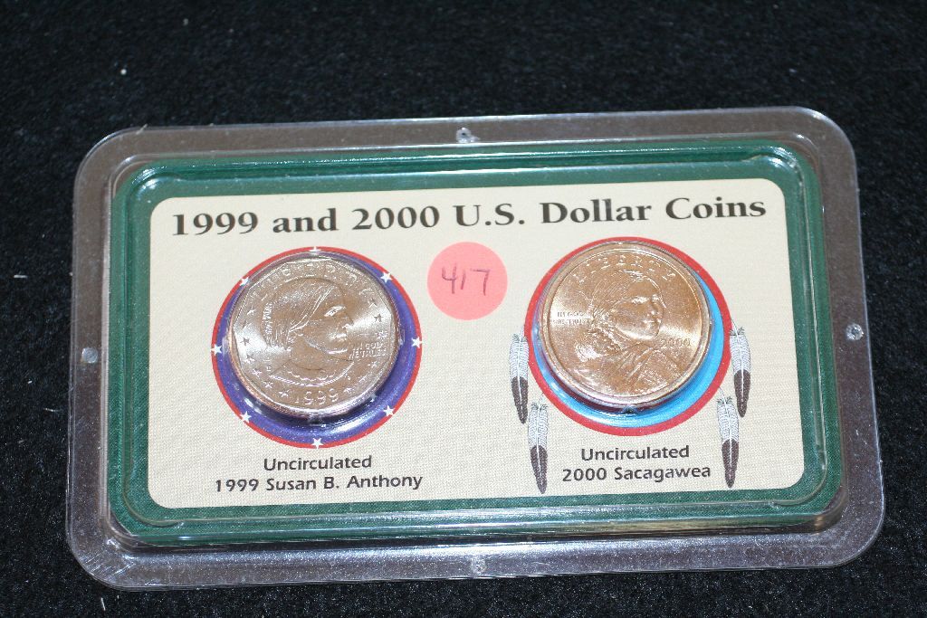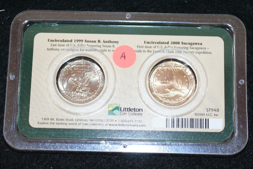 1999-D Susan B. Anthony $1 Coin; UNC & 2000-P Sacagawea $1 Coin; UNC