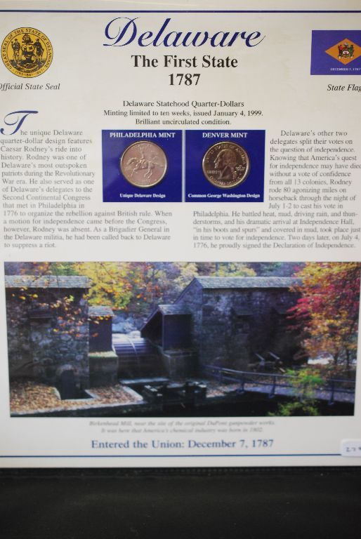 1999 Delaware State Mint Quarter Set W/US Postal Stamps; P&D Mints; EST. $3-6