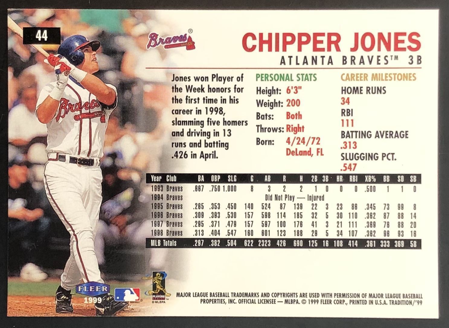 Card #44 MLB, baseball, hall of fame