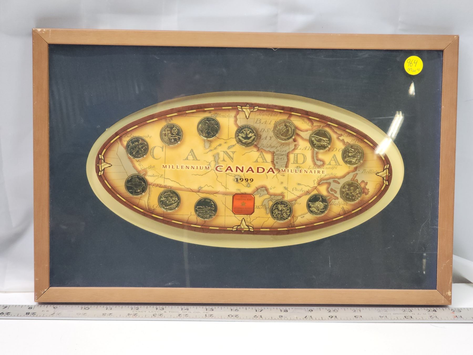 1999 Framed glass, Canadian millenium quarter set - 13pcs