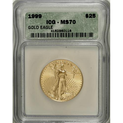 1999 G$25 Half-Ounce Gold Eagle MS70 ICG. NGC Cens