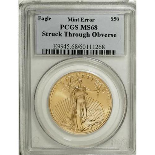 <B>1999 G$50 One-Ounce Gold Eagle--Struck Through Obverse--MS68 PCGS.</B></I> <BR><BR><b>Shipping:</b> Coins & Currency (<a target="_blank" href="http://www.heritageauctions.com/common/shipping.php">view shipping information</a>)