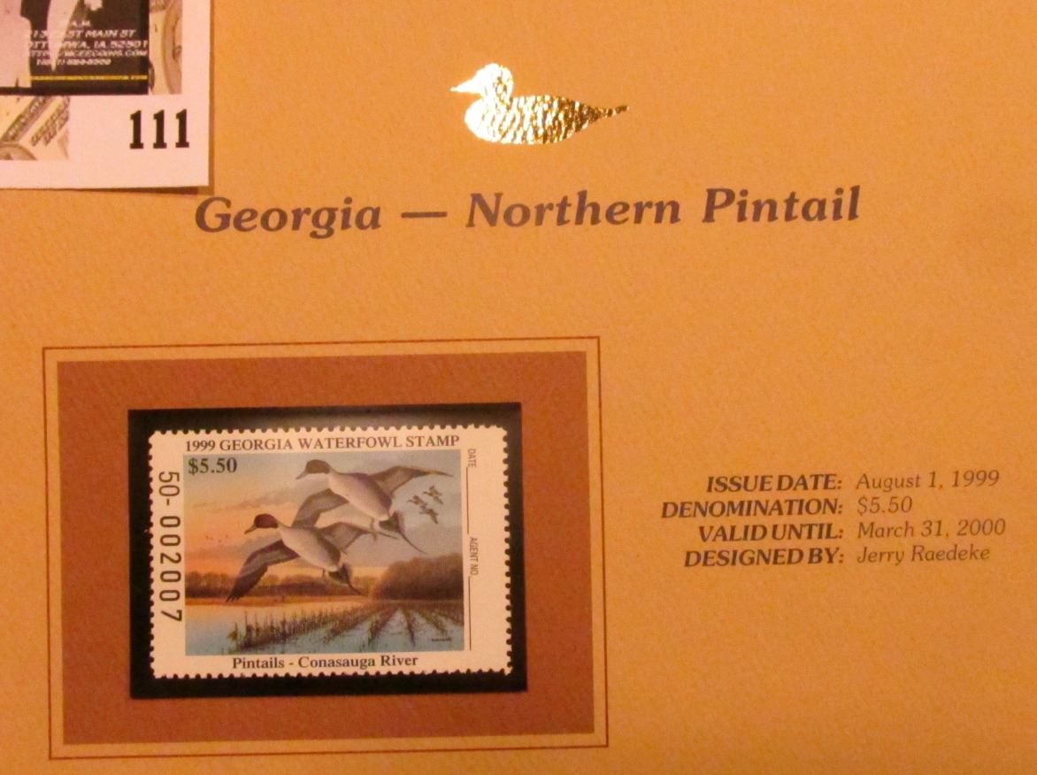 1999 Georgia-Northern Pintail Waterfowl $5.50 Stamp. Mint Condition with literature, unsigned.