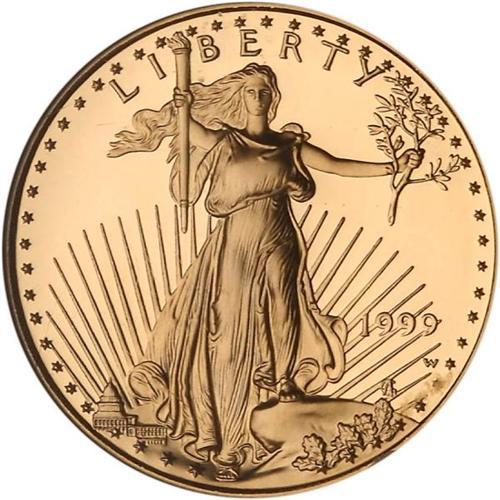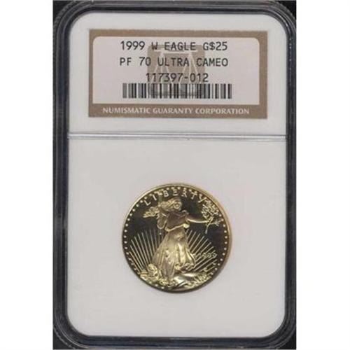 <b>1999 Gold Eagle $25. NGC graded PF70 UC.</b> Collector's Universe price: $2500. Such perfection is rarely seen in the world of modern Gold Eagle coinage. A spectacular gem! <b>(PCGS # 9944)</b>