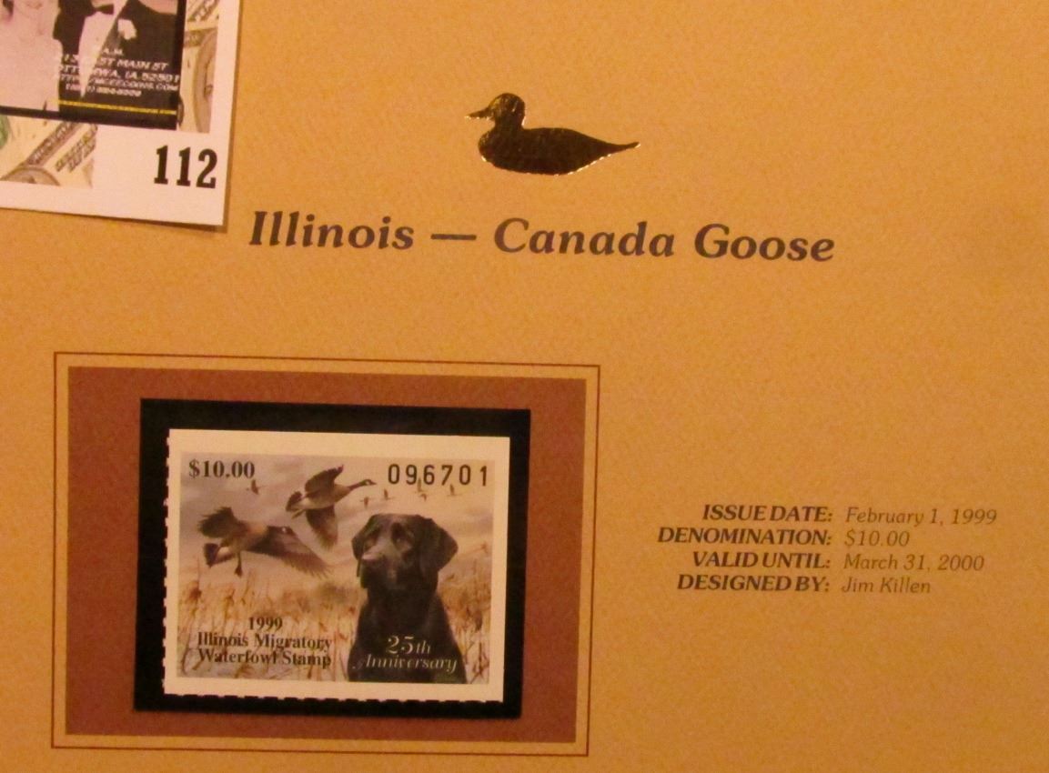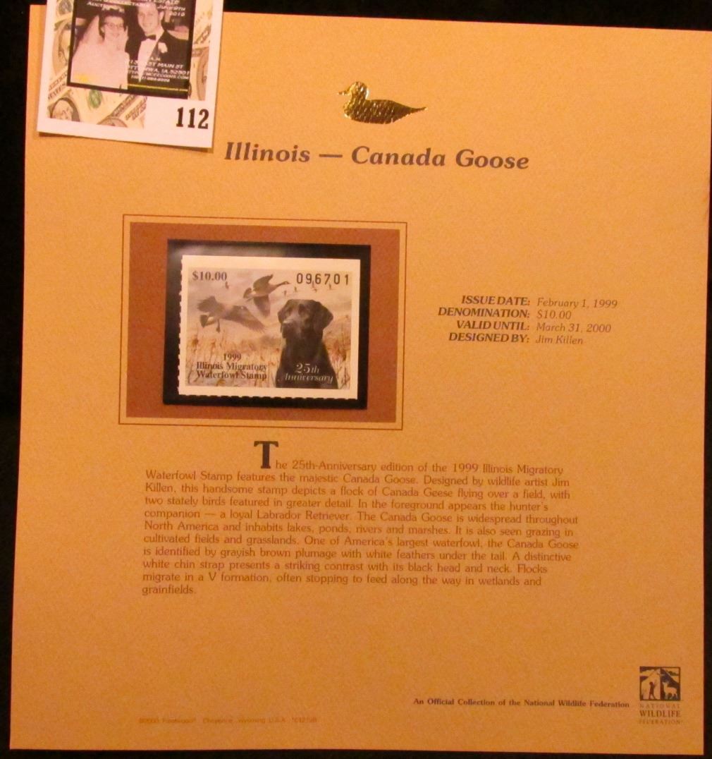 1999 Illinois-Canada Goose Waterfowl $10.00 Stamp. Mint Condition with literature, unsigned.