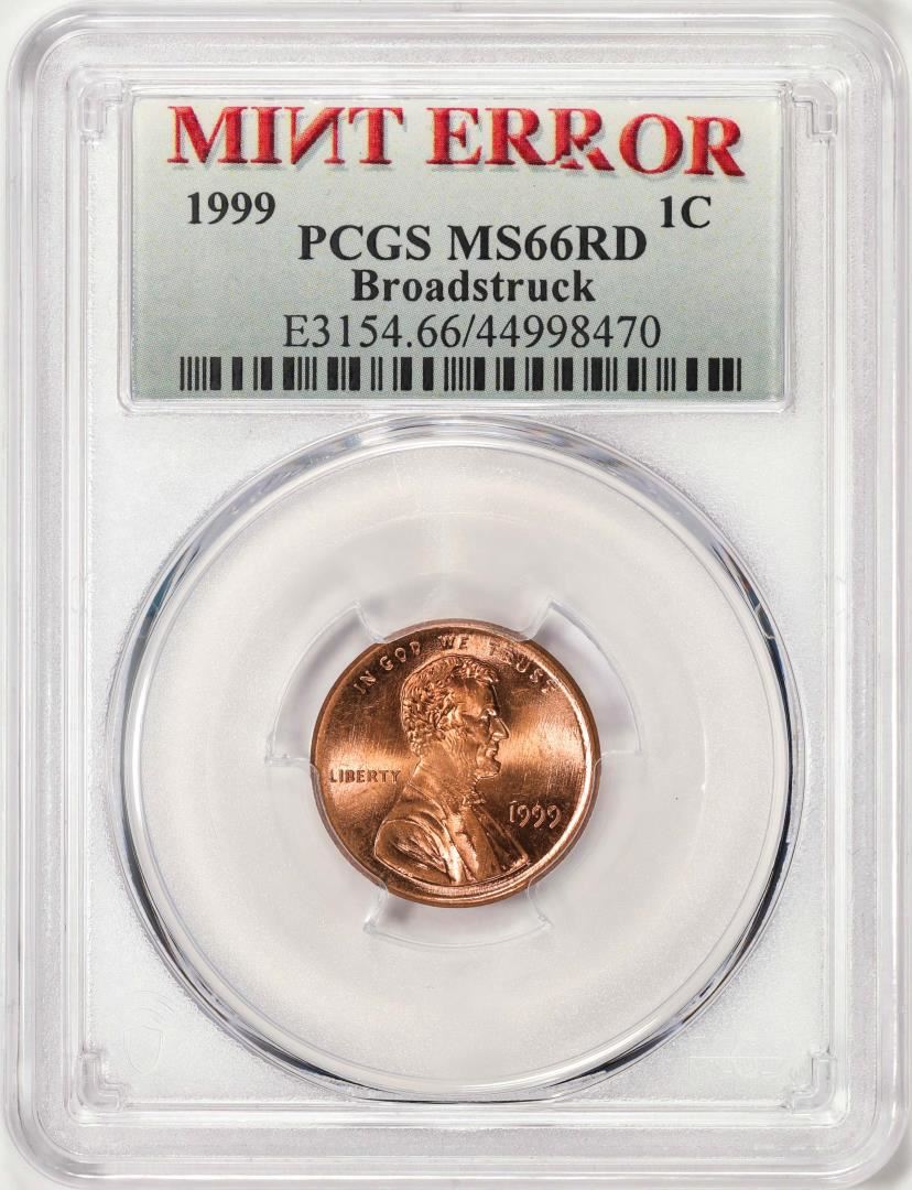 One 1999 Lincoln Memorial Cent Coin Mint Error Broadstruck PCGS MS66RD. PCGS Graded.