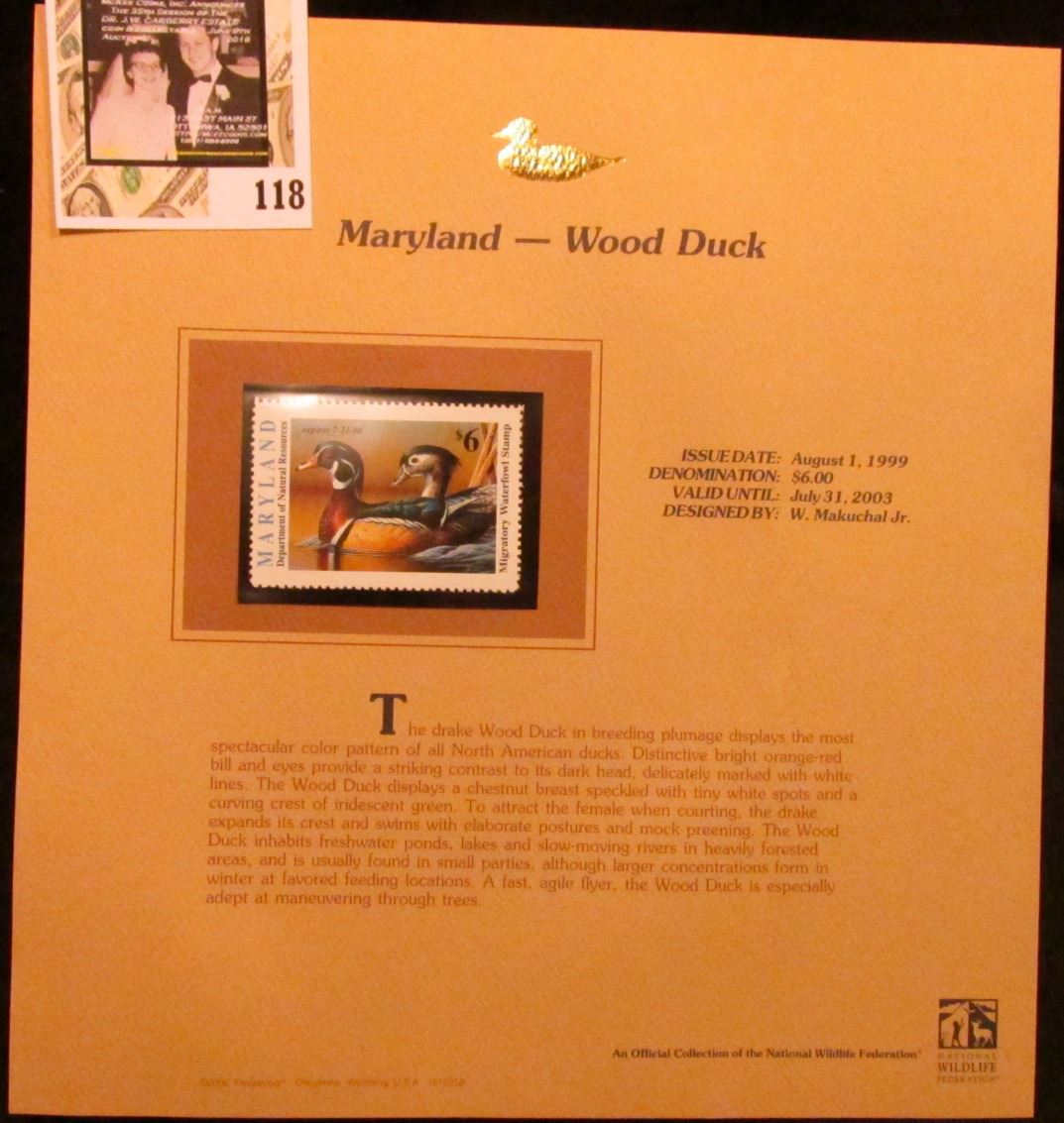 1999 Maryland-Wood Duck Waterfowl $6.00 Stamp. Mint Condition with literature, unsigned.