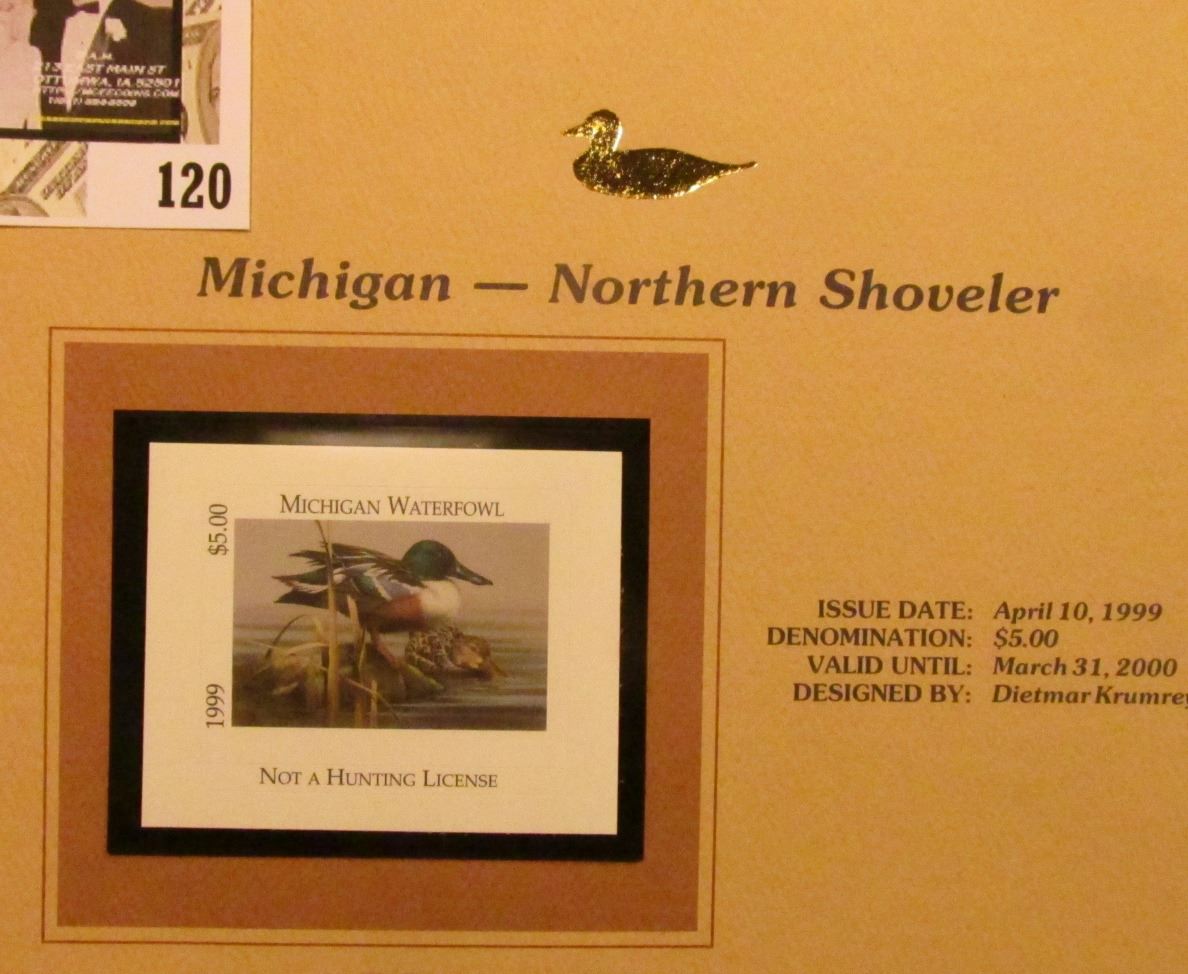 1999 Michigan-Northern Shoveler Waterfowl $5.00 Stamp. Mint Condition with literature, unsigned.