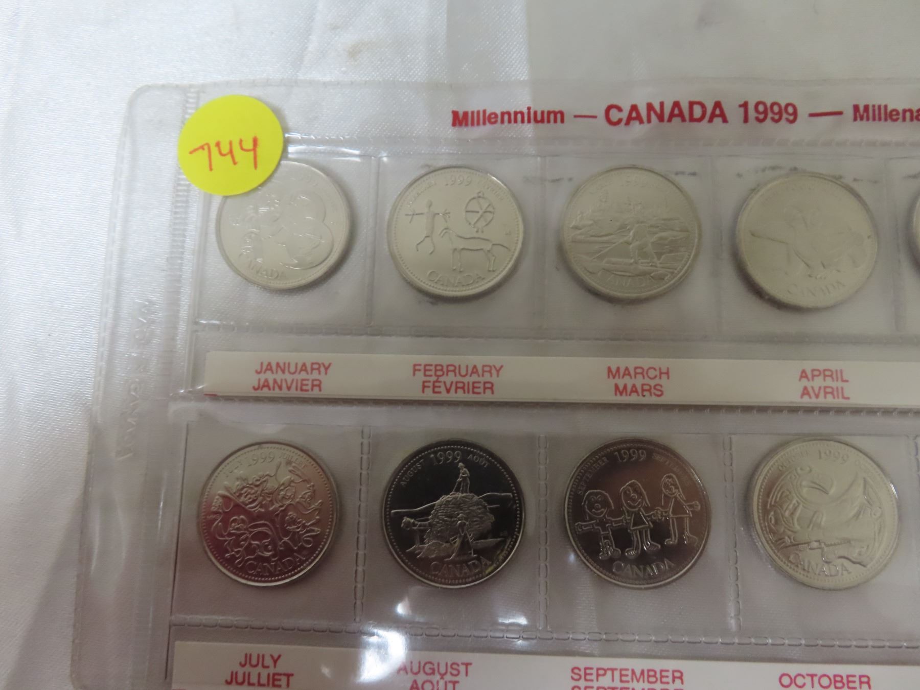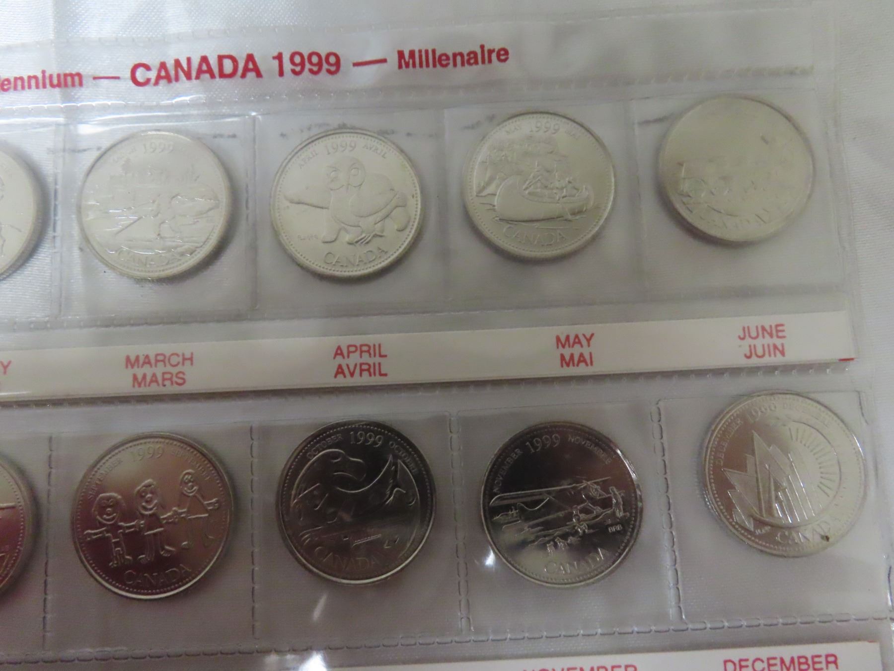 1999 Millennium 25 Cents Collection. 12 coins, one for each month.