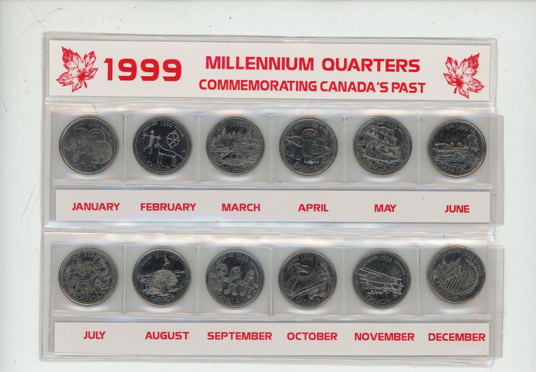 1999 Millennium 25 Cents set. Complete set of 12 coins, one for each month