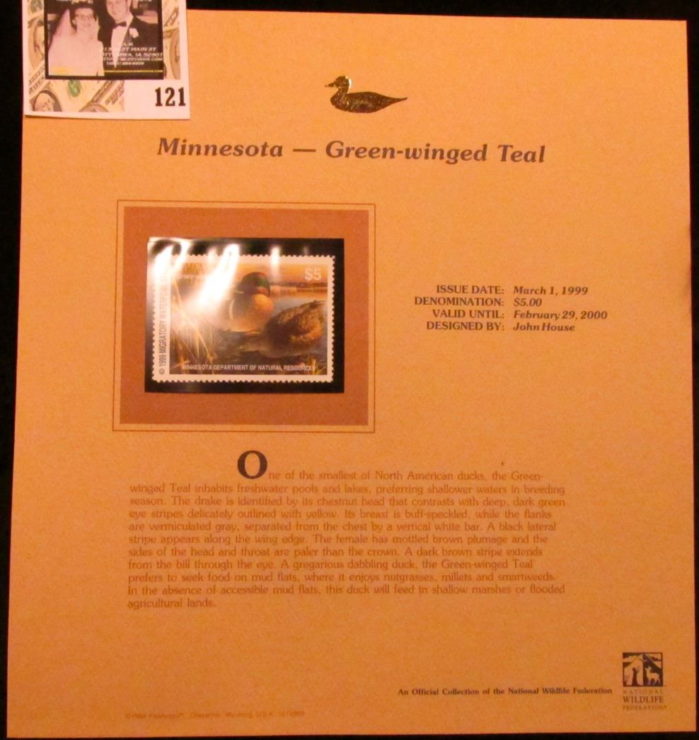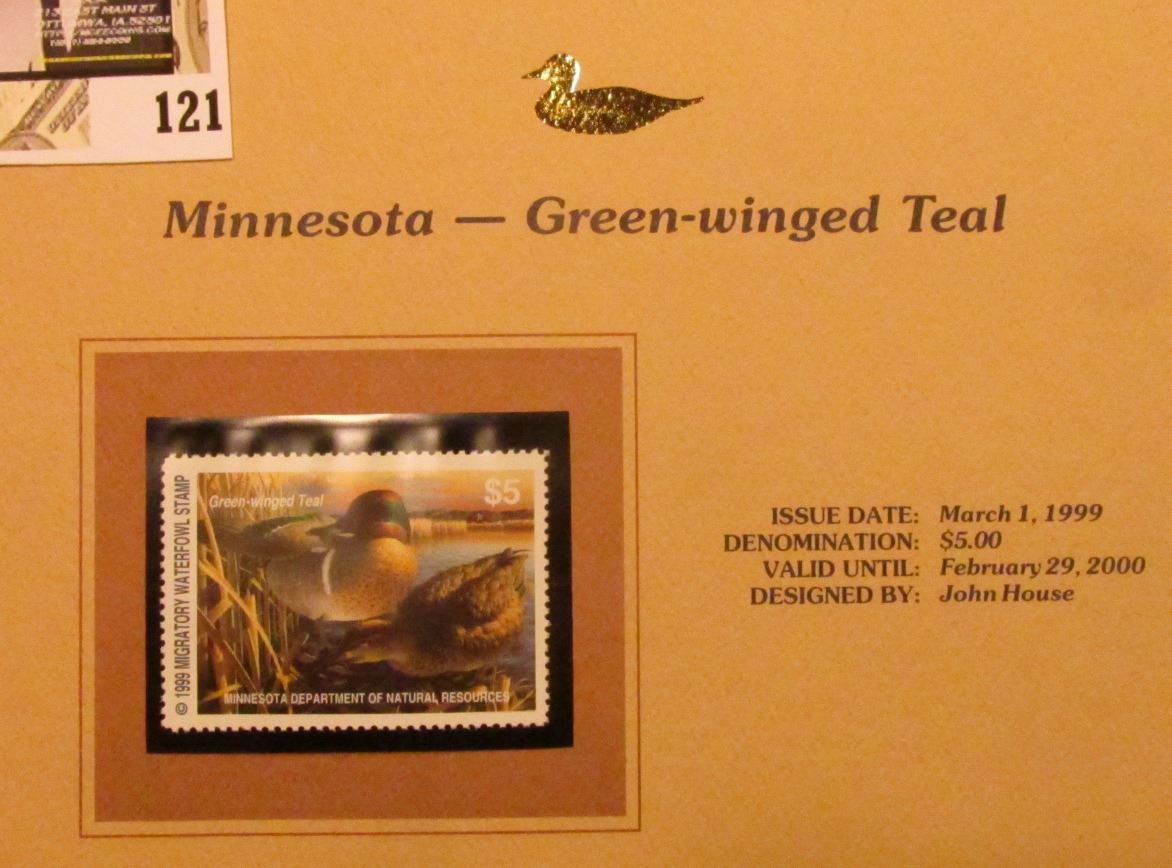 1999 Minnesota-Green-winged Teal Waterfowl $5.00 Stamp. Mint Condition with literature, unsigned.