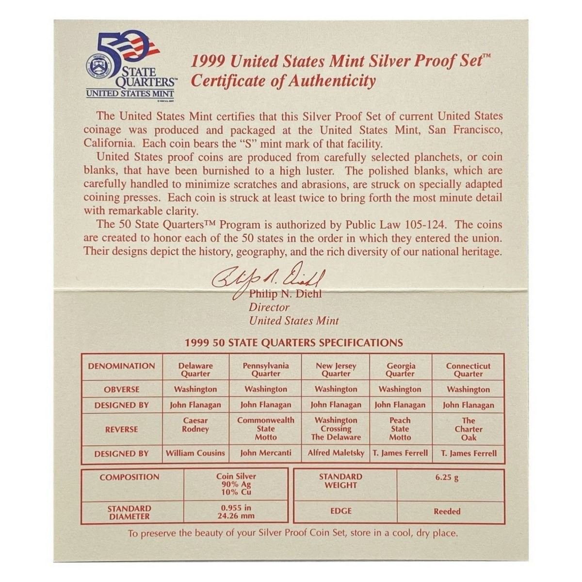 1999 Mint Silver Proof Set [1C-50C][5] Quarters