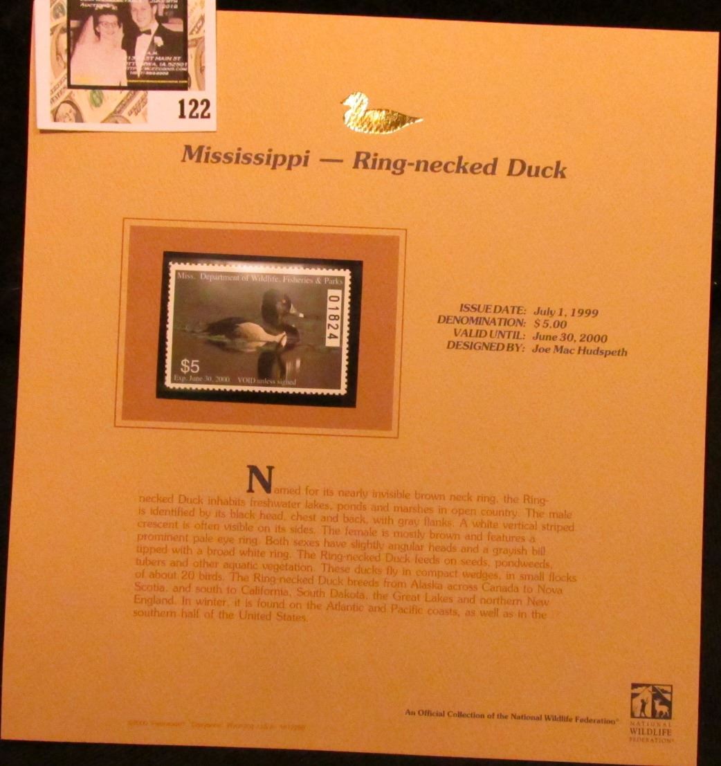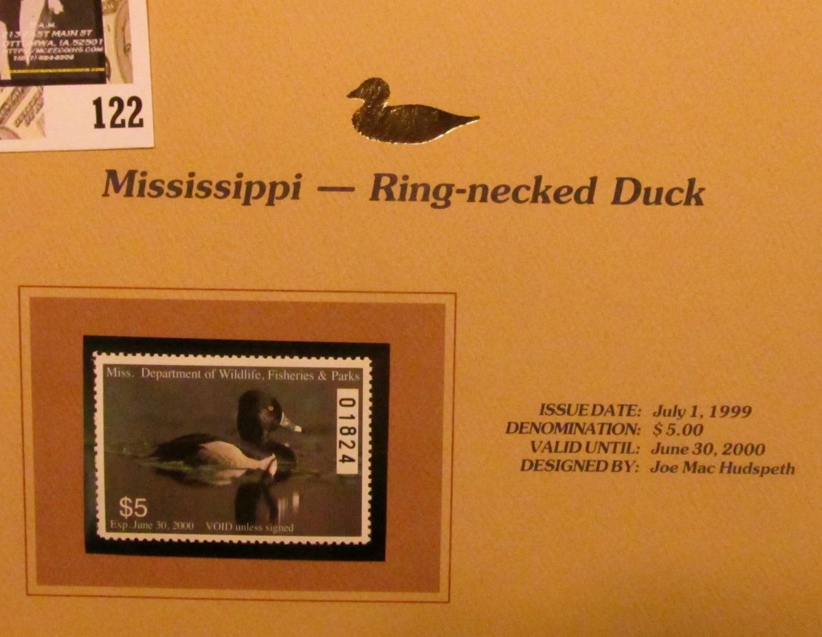 1999 Mississippi Ring-necked Duck Waterfowl $5.00 Stamp. Mint Condition with literature, unsigned.