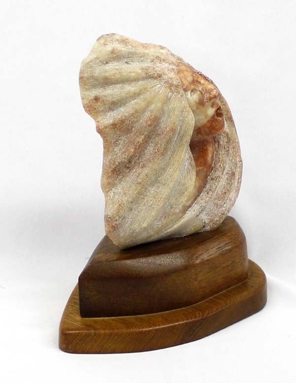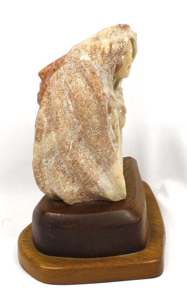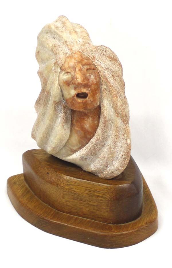 1999 Native American Carved Double Sided Alabaster Statue, measures 6'' x 10'' x 6.5'', on beautiful wood base and signed by the artist