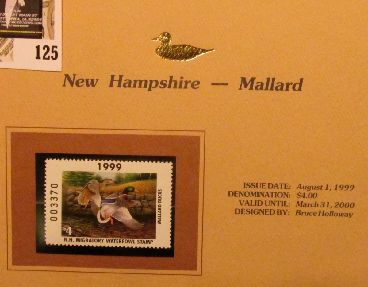 1999 New Hampshire-Mallard Waterfowl $4.00 Stamp. Mint Condition with literature, unsigned.