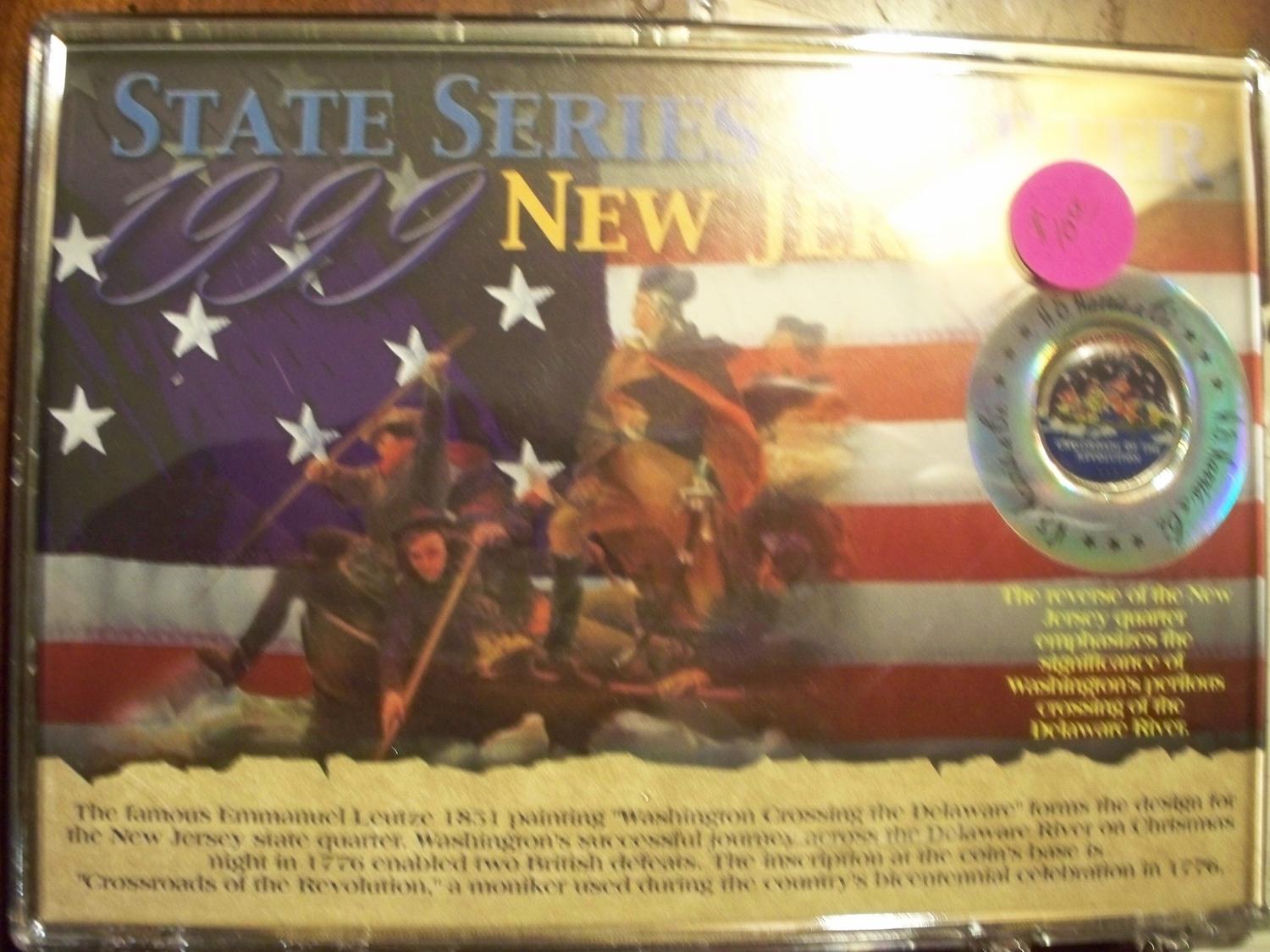 1999 New Jersey Painted State Quarter in case - features Washington crossing the Delaware on Christmas.
