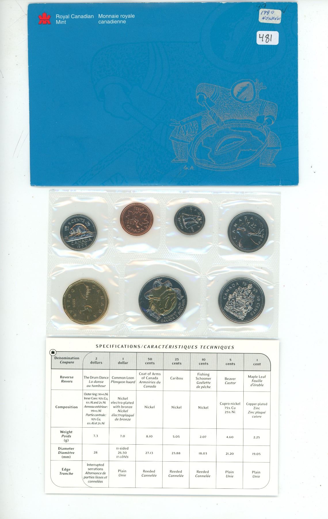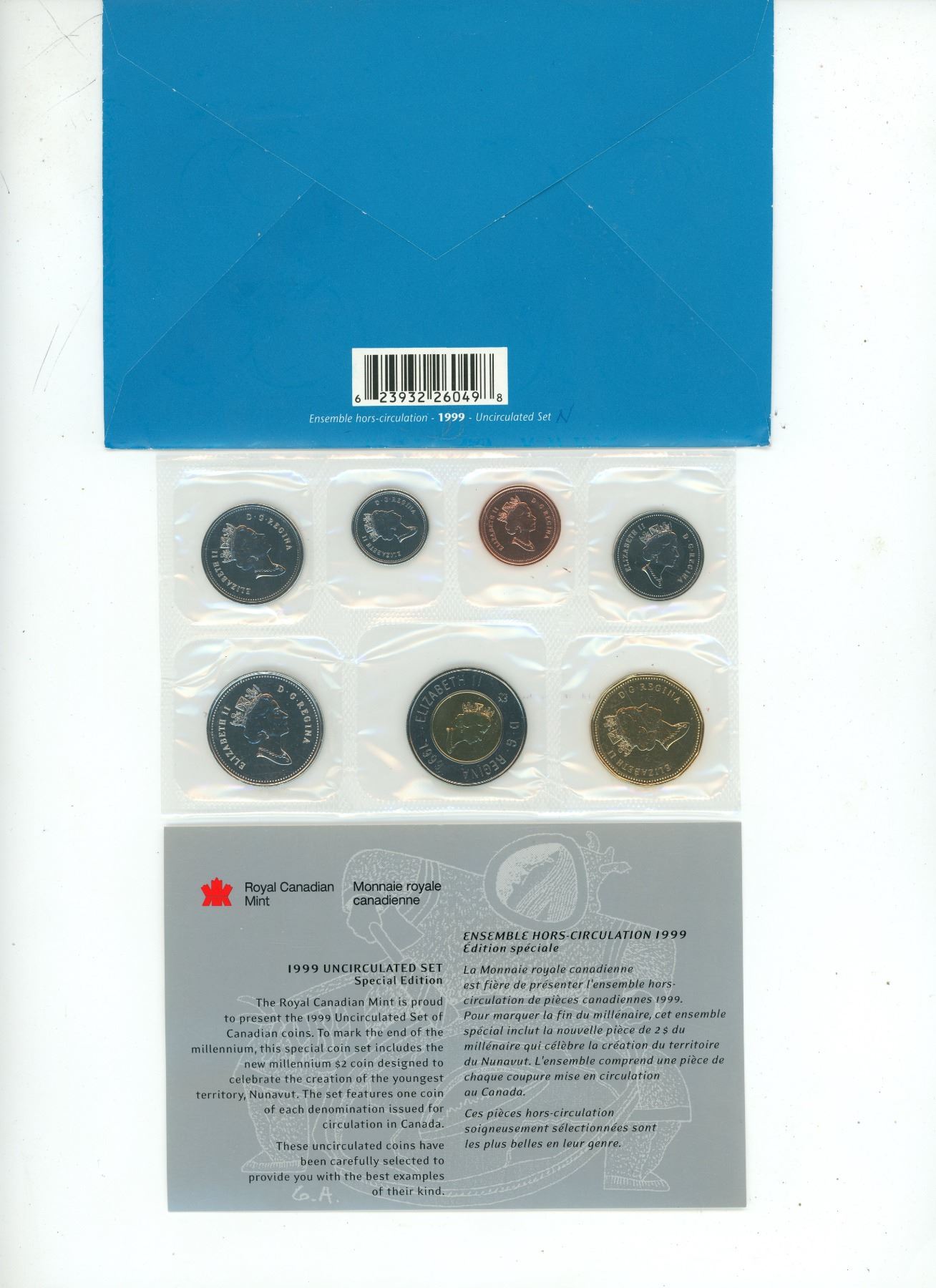 1999 Nunavut Proof Like Set. 7-coin set with Nunavut Toonie.