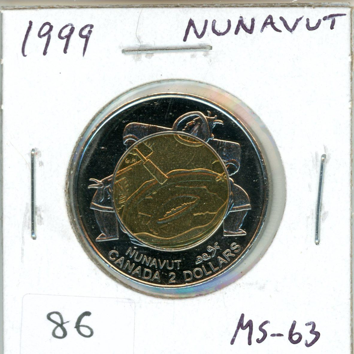 1999 Nunavut Toonie. Commemorates Canada’s newest territory. MS-63.