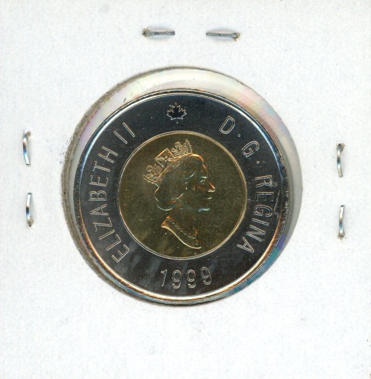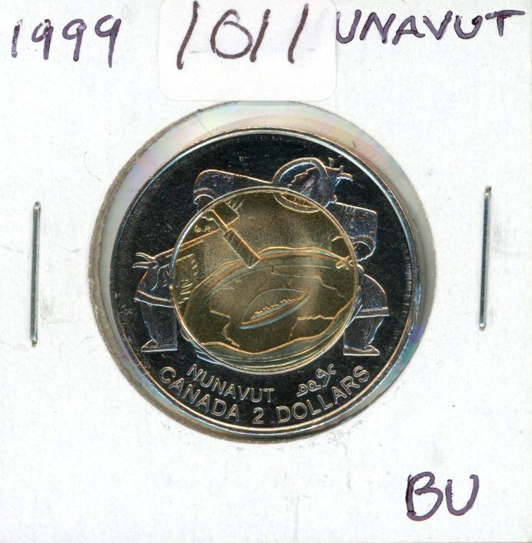 1999 Nunavut Toonie. Commemorates Canada’s third Territory. From an original Mint roll. BU.