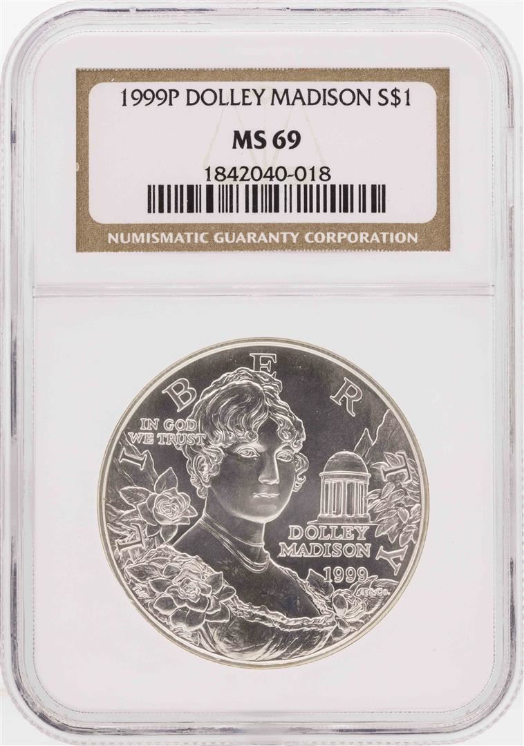 One 1999-P $1 Dolley Madison Commemorative Silver Dollar Coin NGC MS69. NGC Certified.