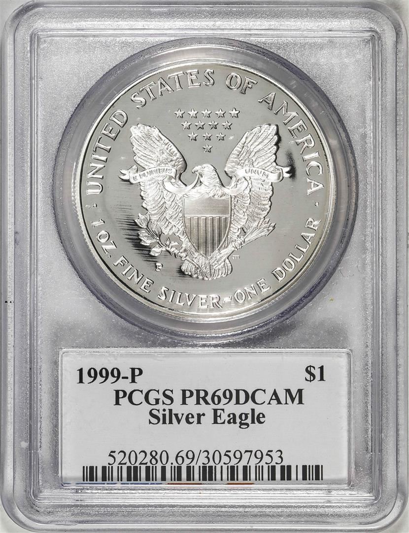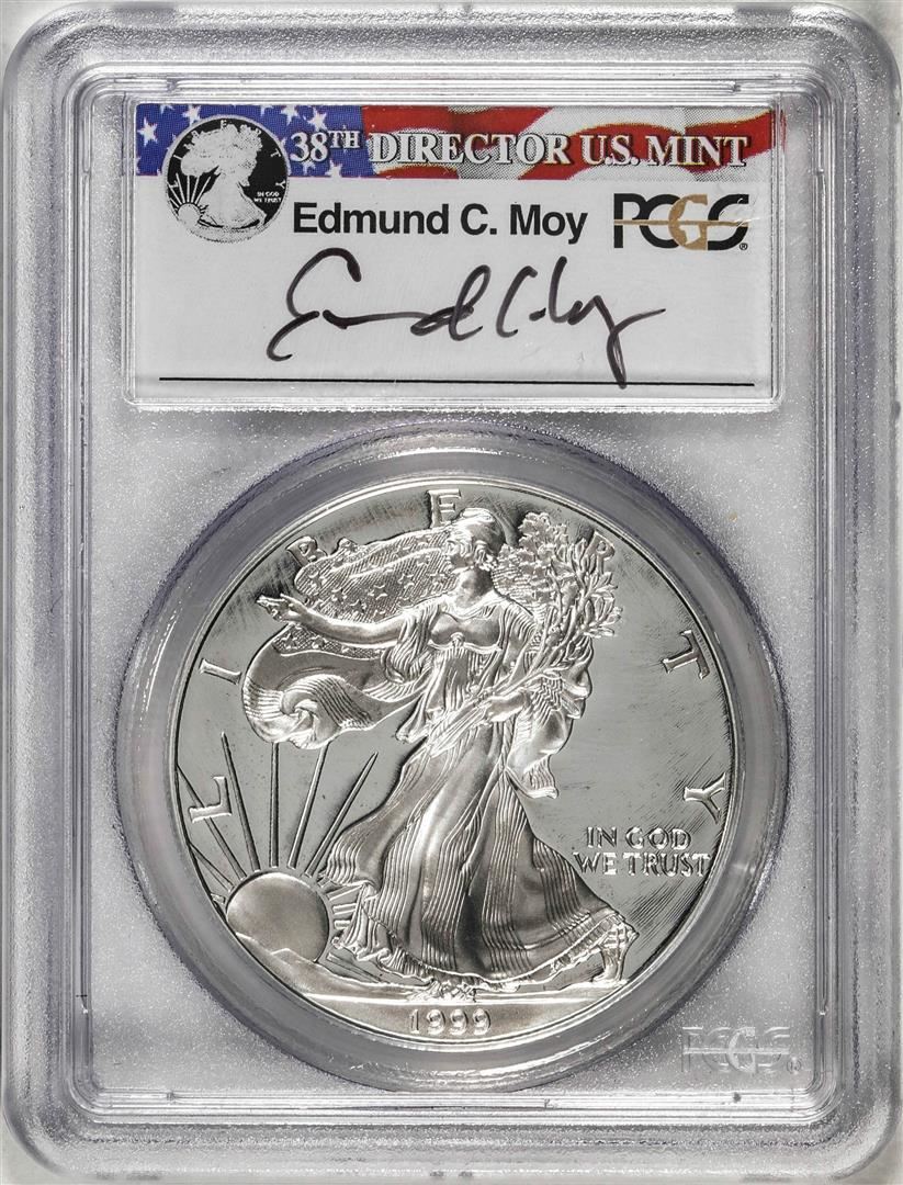 One 1999-P $1 Proof American Silver Eagle Coin PCGS PR69DCAM Edmund Moy Signature. PCGS Graded.