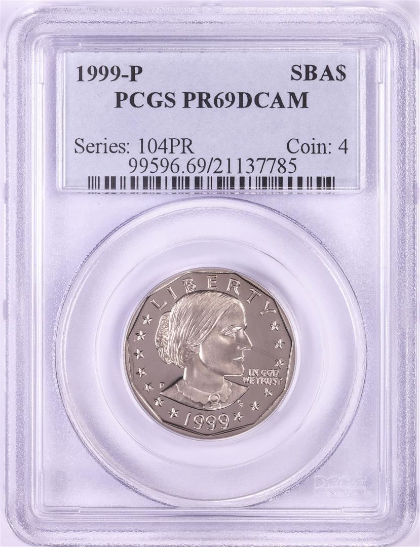 One 1999-P $1 Proof Susan B Anthony Dollar Coin PCGS PR69DCAM. PCGS Graded.