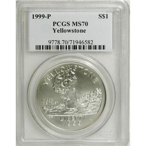 1999-P $1 Yellowstone Silver Dollar MS70 PCGS. PCG