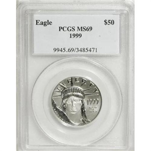 <B>1999 $50 Half-Ounce Platinum Eagle MS69 PCGS.</B></I> PCGS Population (317/1). NGC Census: (314/2). (#9775)<BR><BR><b>Shipping:</b> Coins & Currency (<a target="_blank" href="http://www.heritageauctions.com/common/shipping.php">view shipping information</a>)