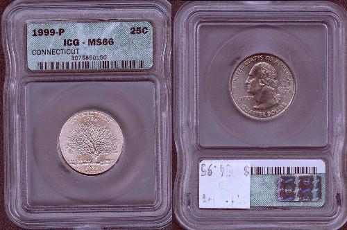 1999-P Connecticut Quarter ICG Graded MS66; Gem circulation dates are hard to find, trends $55