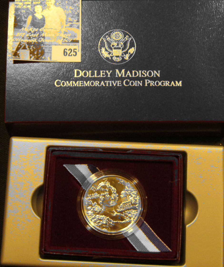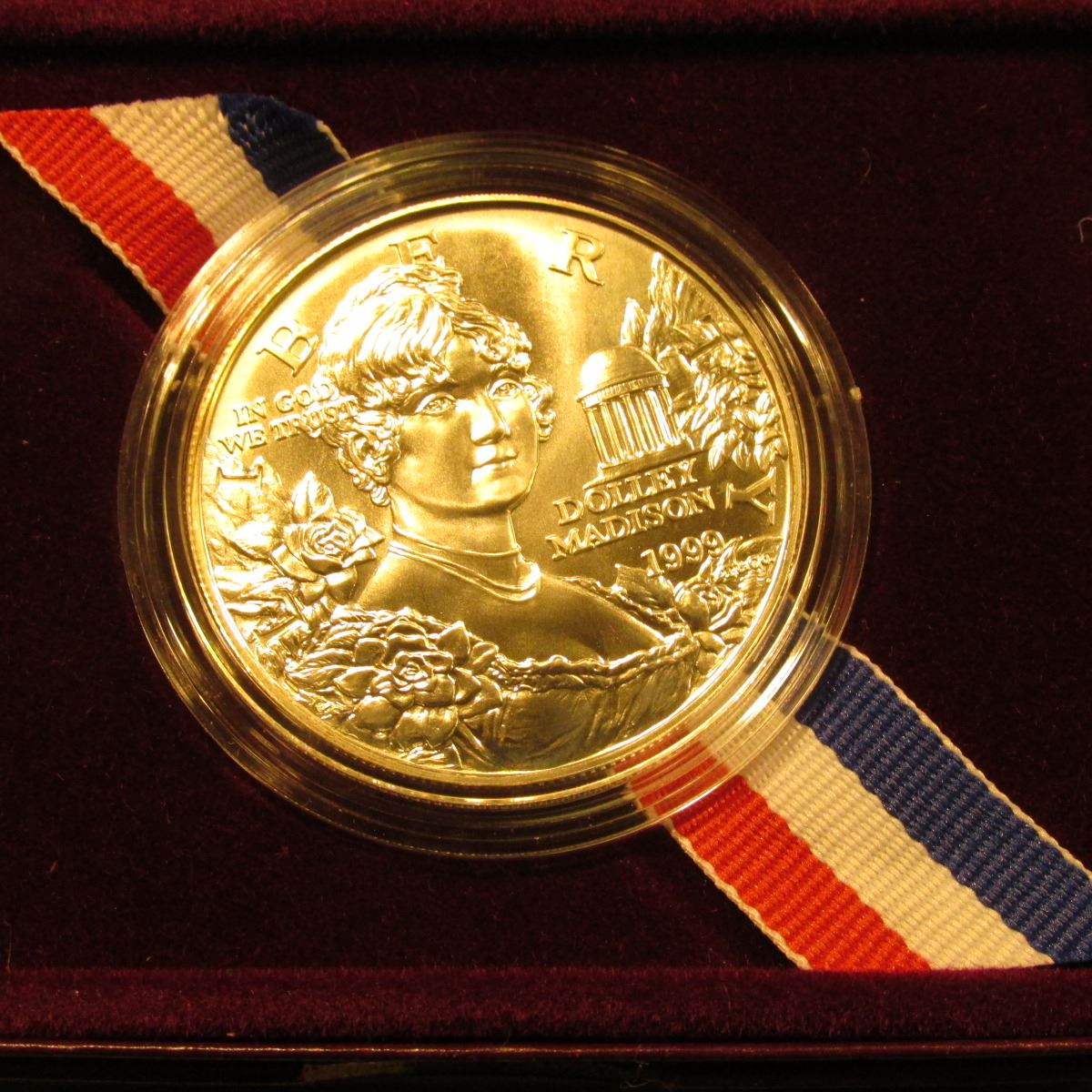 1999 P Dolley Madison Gem BU .900 Fine Commemorative Silver Dollar in original box of issue with literature.