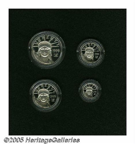 <B>1999-P Philadelphia Set PR68 Deep Cameo Uncertified.</B></I> The U.S. Mint released a five piece 'Philadelphia Set' to "commemorate the 200th anniversary of the striking of the first official regular issue U.S. Coins produced for general circulation by the Philadelphia Mint." The set includes: <B>Silver Eagle; Tenth-Ounce $5 Gold, Quarter-Ounce $10 Gold; Half-Ounce $25 Gold; One-Ounce $50 Gold;</B></I> and a <B>0.76 troy ounce 90% Silver Medal,</B></I> the obverse depicts the famous John Ward Dunsmore painting of Martha Washington inspecting the first coinage, the reverse features various U.S. coin designs. The presentation box and certificate of authenticity accompany the lot.