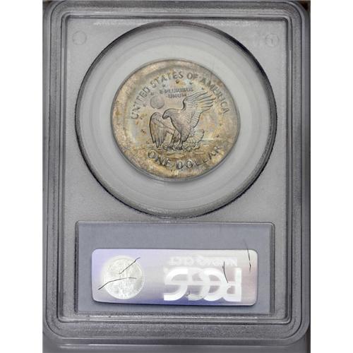 <B>1999-P<img border='0' src='http://www.heritagecoins.com/images/star.gif' width=10 height=10>BA$> Anthony Dollar--Broadstruck on a Type One Proof Planchet--MS64 PCGS.</B></I> This uncentered broadstruck is aligned toward 2 o'clock. There is no raised indication of a raised rim. The unstruck surface is granular, a different planchet preparation than the other broadstruck 1999-P Anthony dollars in the present auction. The Philadelphia Mint struck the proof Anthony dollars in 1999, instead of the usually-selected San Francisco Mint.