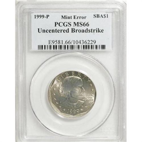 <B>1999-P SBA$ Susan B. Anthony Dollar--Uncentered Broadstrike--MS66 PCGS.</B></I><BR><BR><b>Shipping:</b> Coins & Currency (<a target="_blank" href="http://www.heritageauctions.com/common/shipping.php">view shipping information</a>)