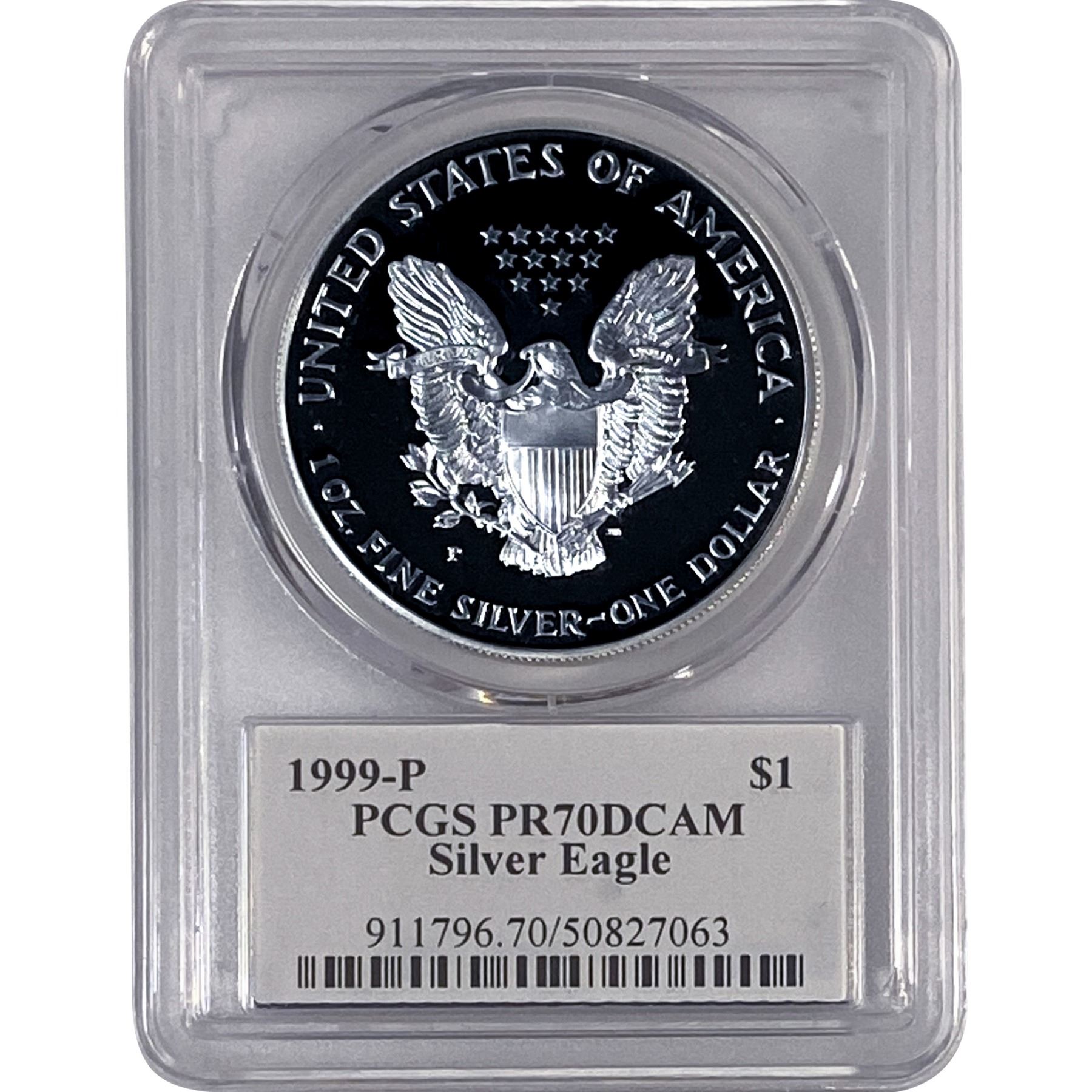 1999-P Silver Eagle PCGS PR70 DCAM Thomas D Rogers