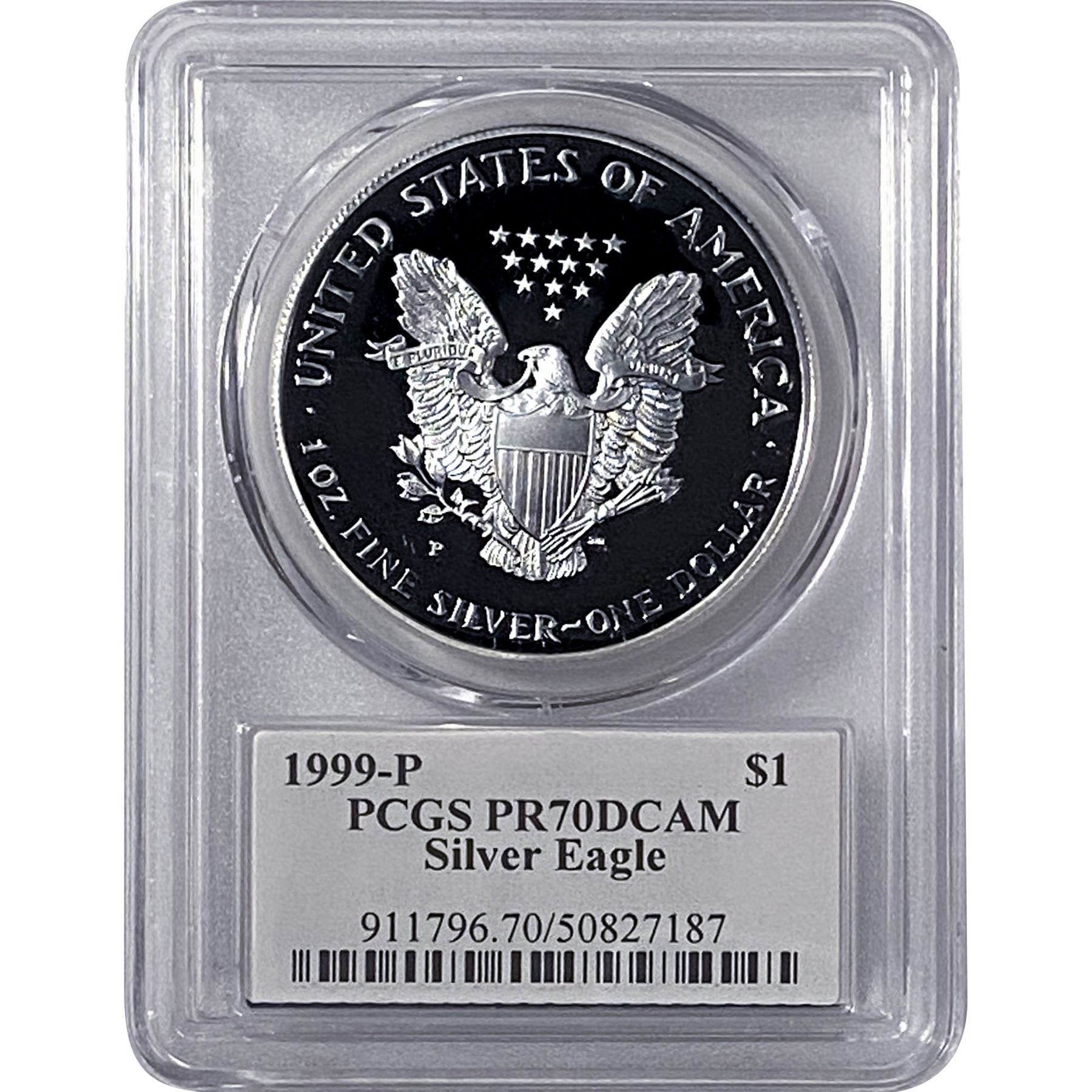 1999-P Silver Eagle PCGS PR70 DCAM Thomas D Rogers
