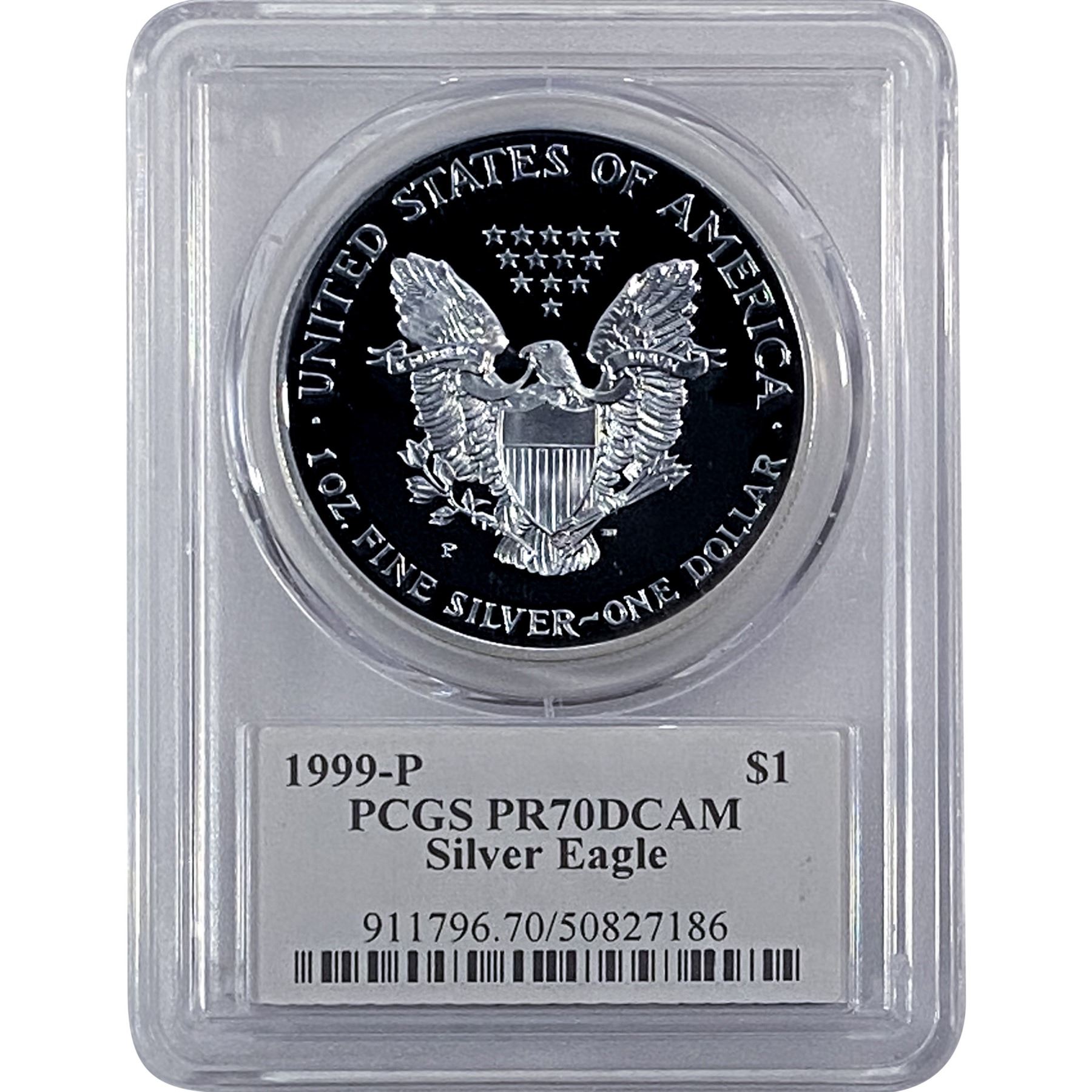 1999-P Silver Eagle PCGS PR70 DCAM Thomas D Rogers