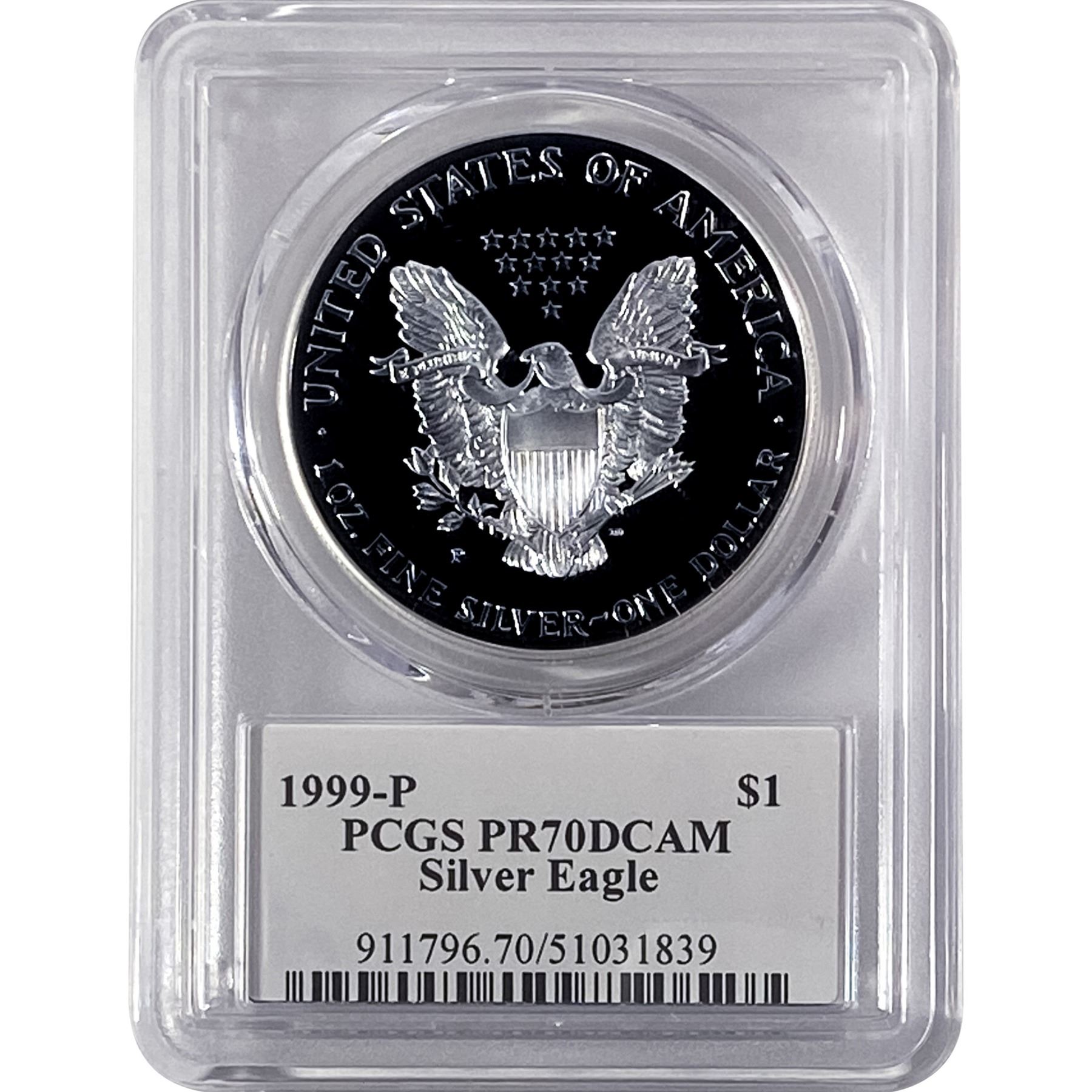 1999-P Silver Eagle PCGS PR70 DCAM Thomas D Rogers